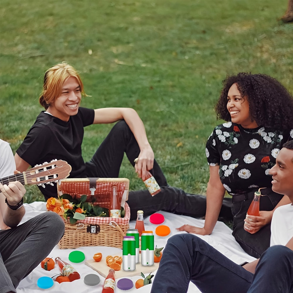 Olti silikonli soda qopqog'i, to'kilishlarni oldini oladi va standart soda bankalariga mos keladi. Ular turli ranglarda mavjud va shuningdek, sharbat va ichimlik bankalarini yopish uchun ham ishlatilishi mumkin.