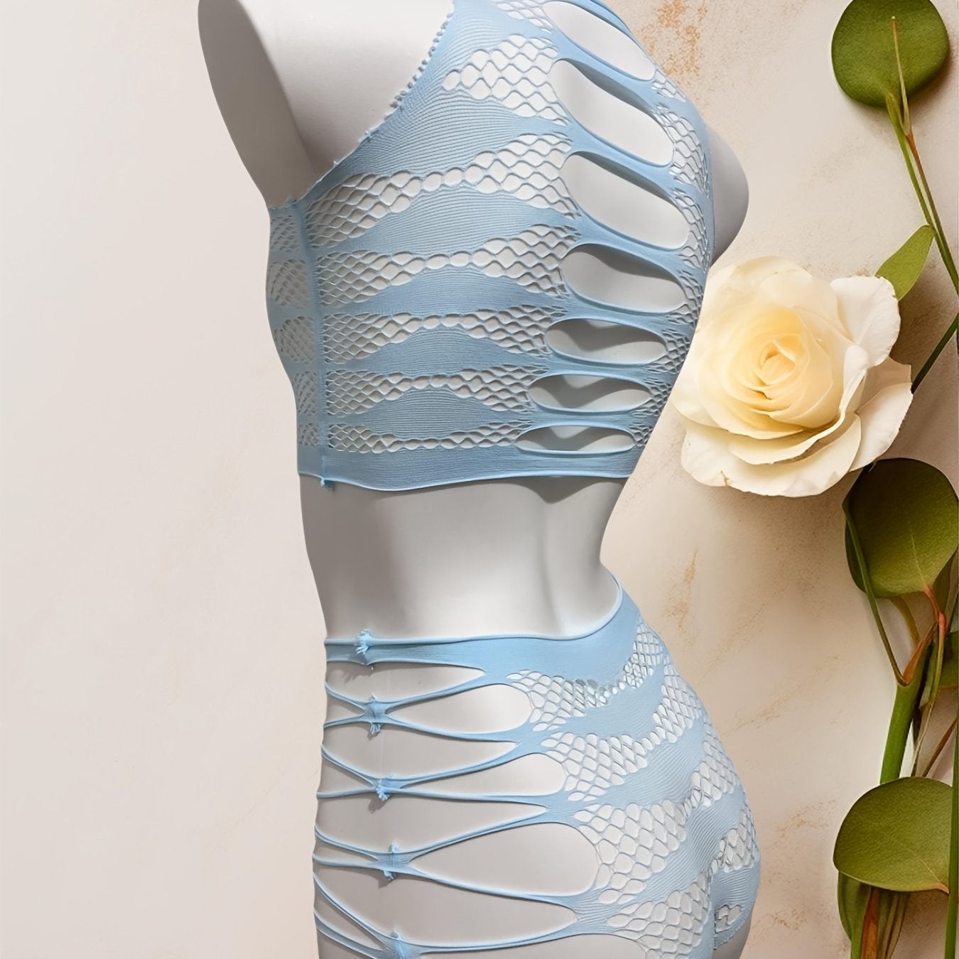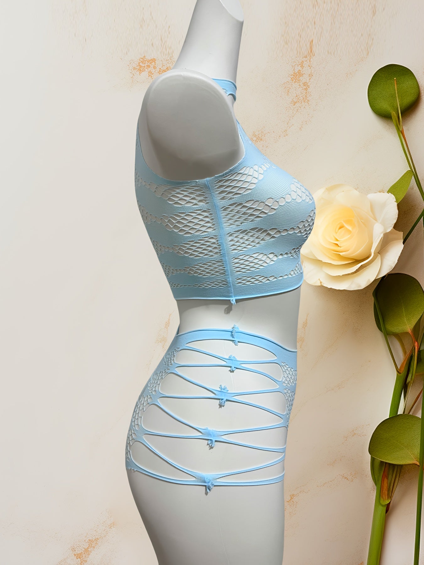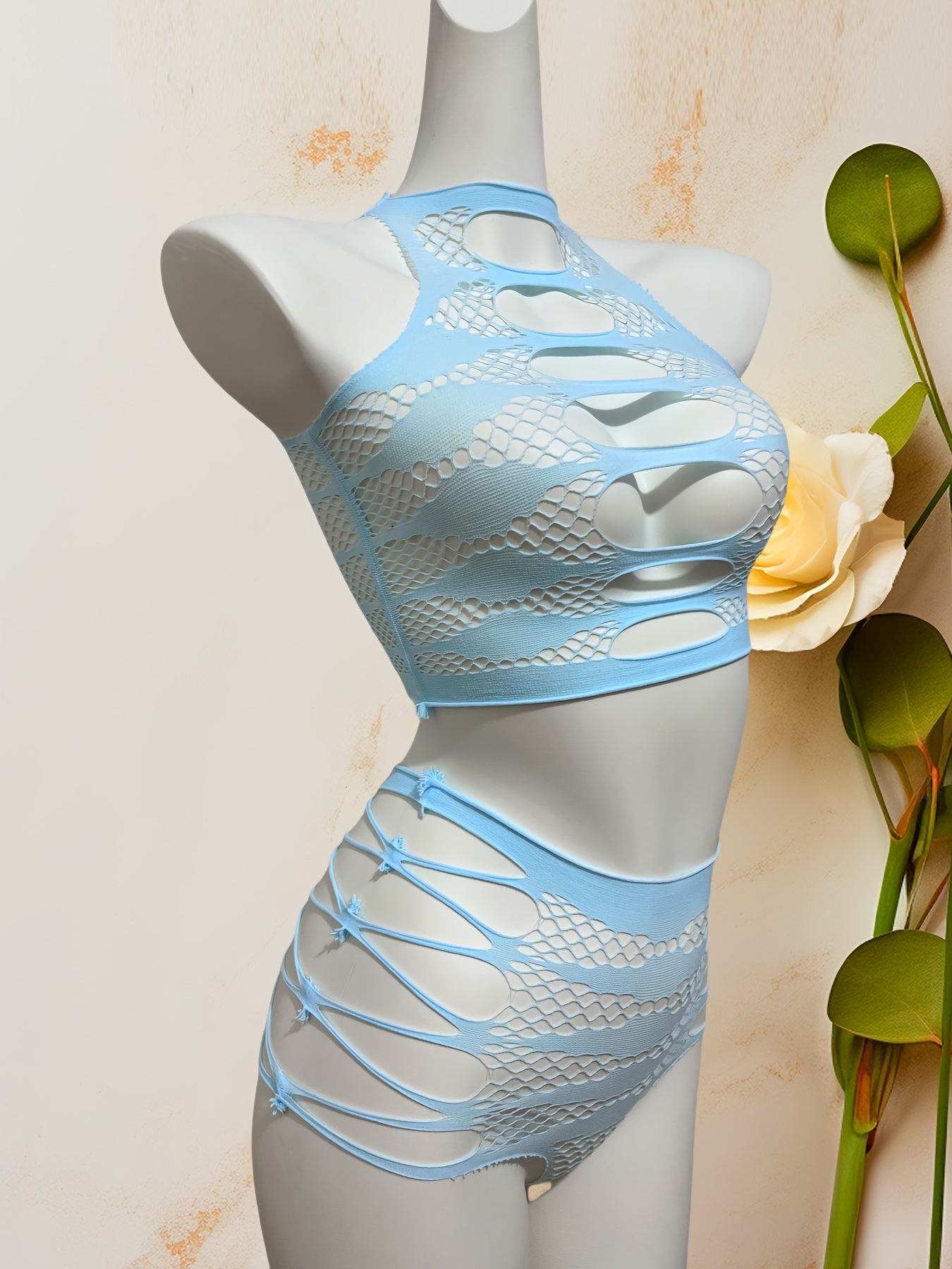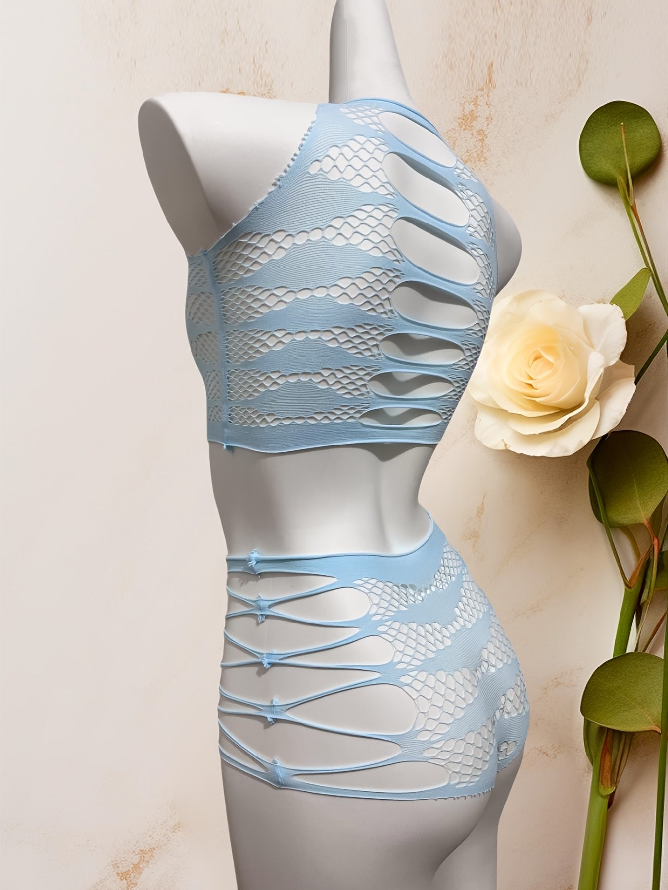 Osmon Moviy Bo'sh Qoplangan Tarmoq Yuzi va Ichki Kiyimlar To'plami Jozibador Elastik Ichki Kiyim 2ta