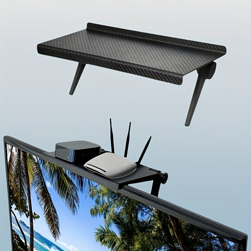 Sozlanadigan TV ekranining yuqori javoni, karbon tolasi ko‘rinishida, teshiksiz monitorni ko‘taruvchi, joyni tejovchi elektronika tashkilotchisi
