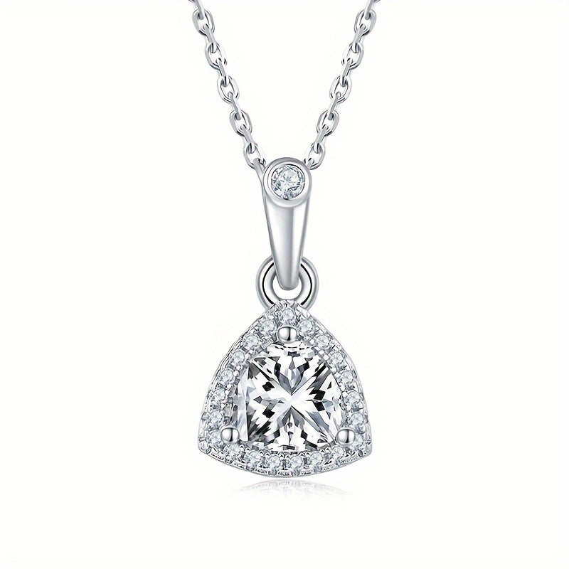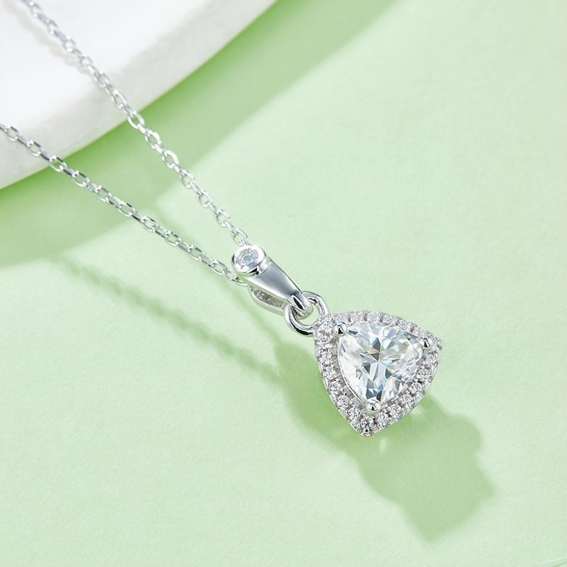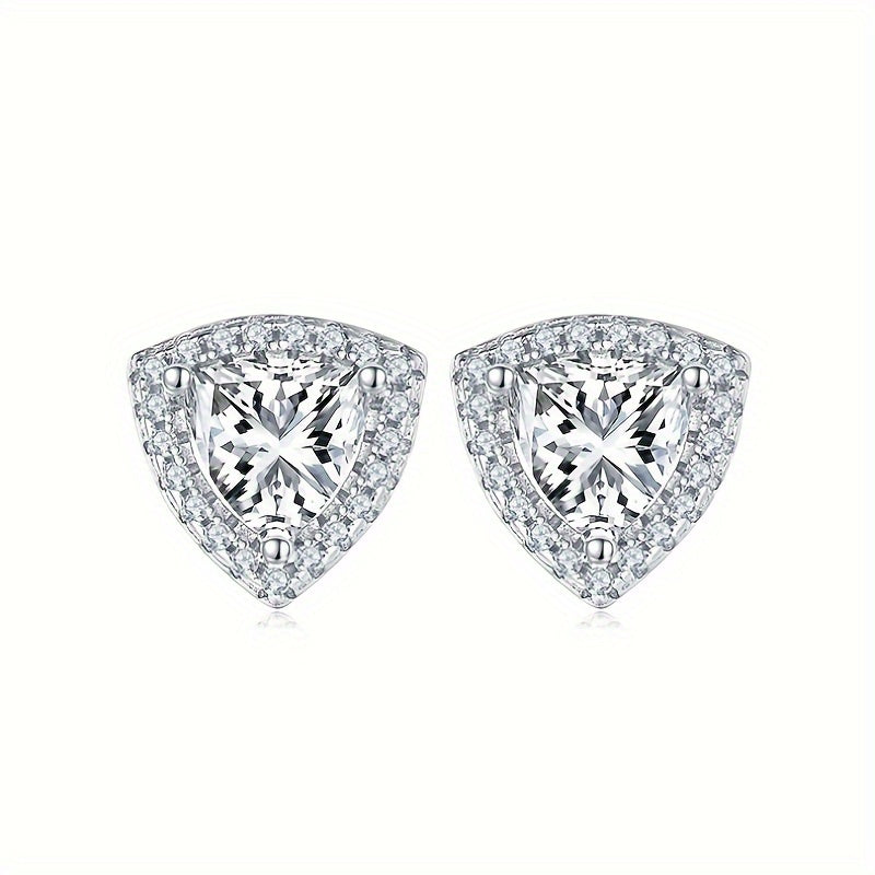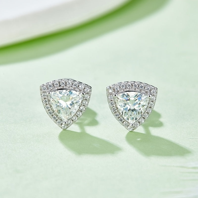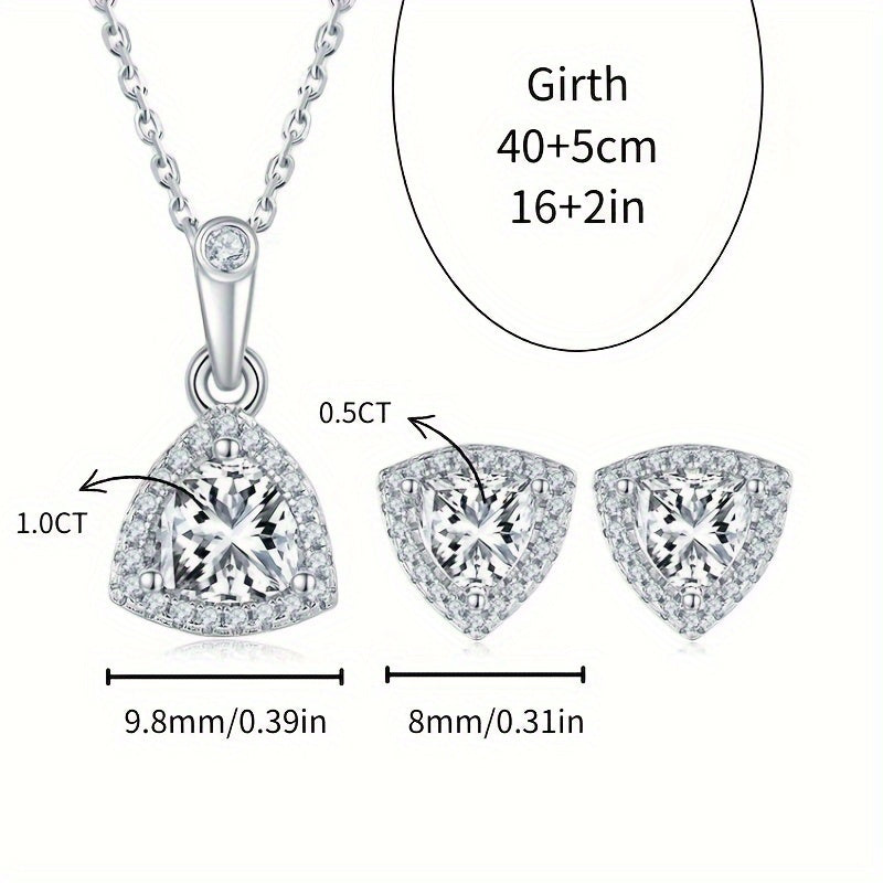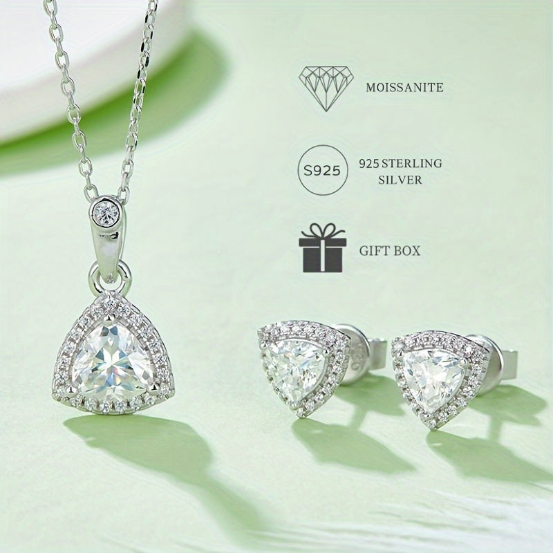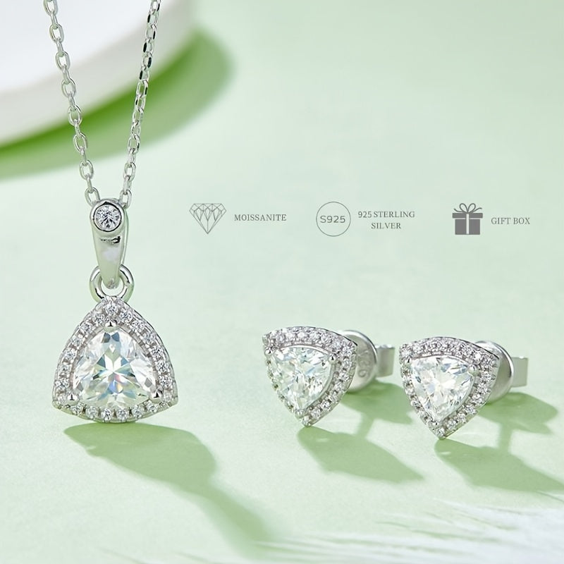 Ayollar uchun Moissanit bilan kumush uchburchakli taqinchoq va sirg‘a seti