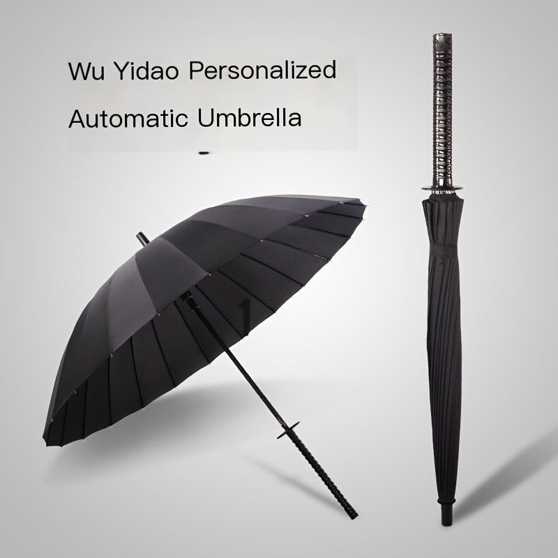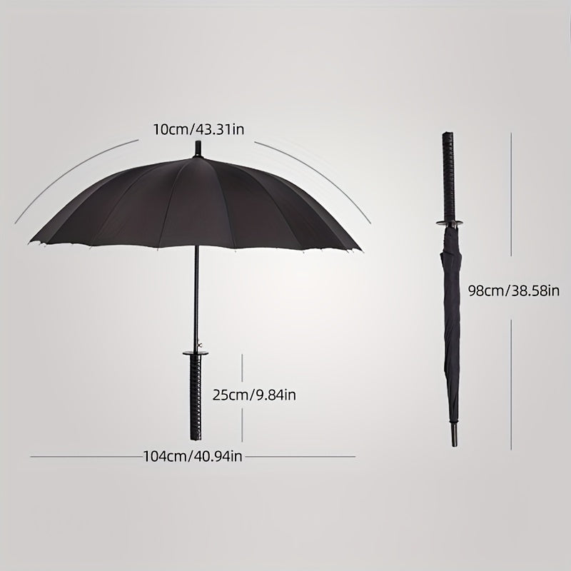 Sleek Warrior Samurai Qilich Shamsiya - Uzoq tutqich, suv o'tkazmaydigan, qo'lda ochiladigan, 16 ta qirrali, mustahkam fiberglass ramka