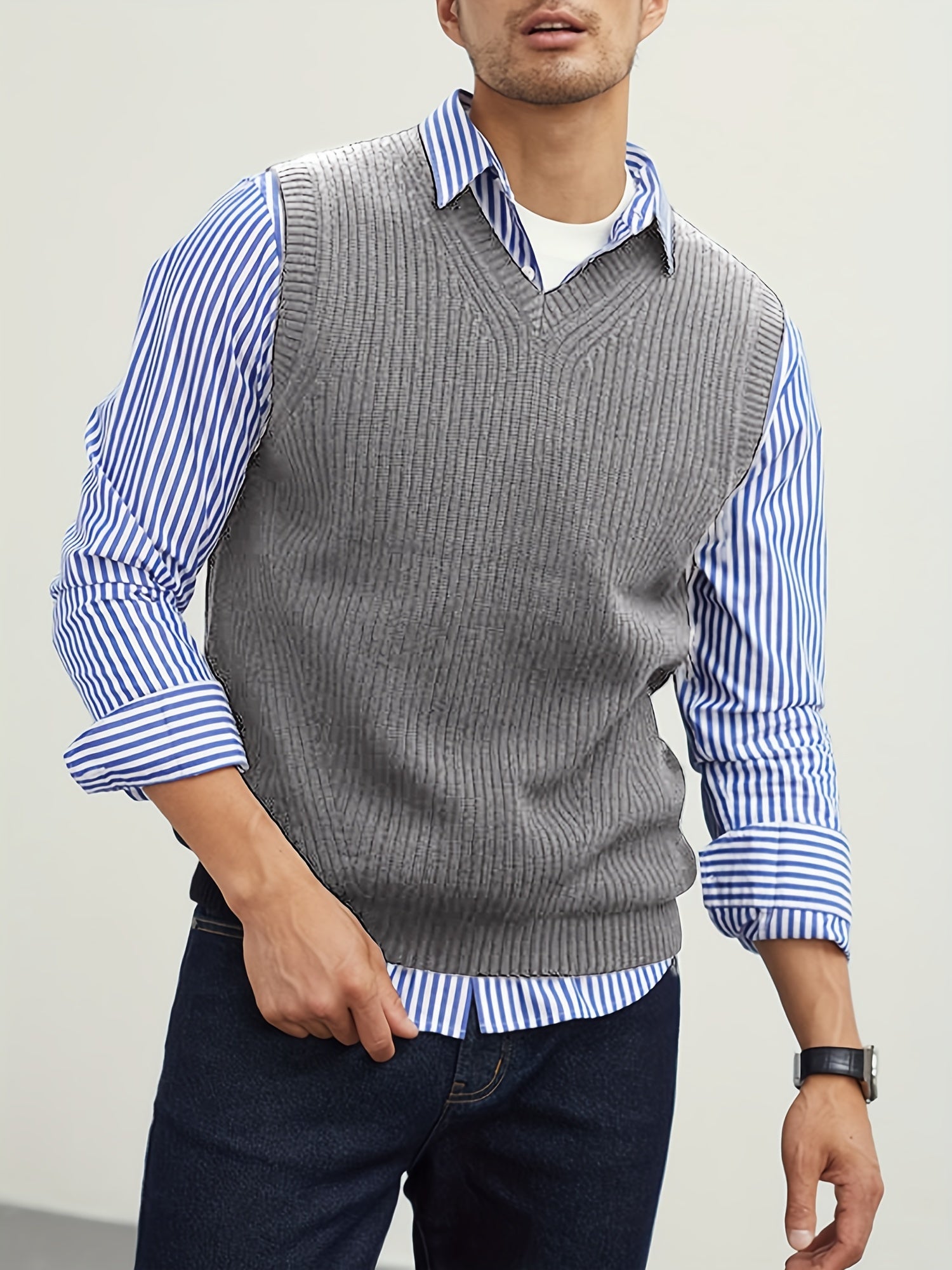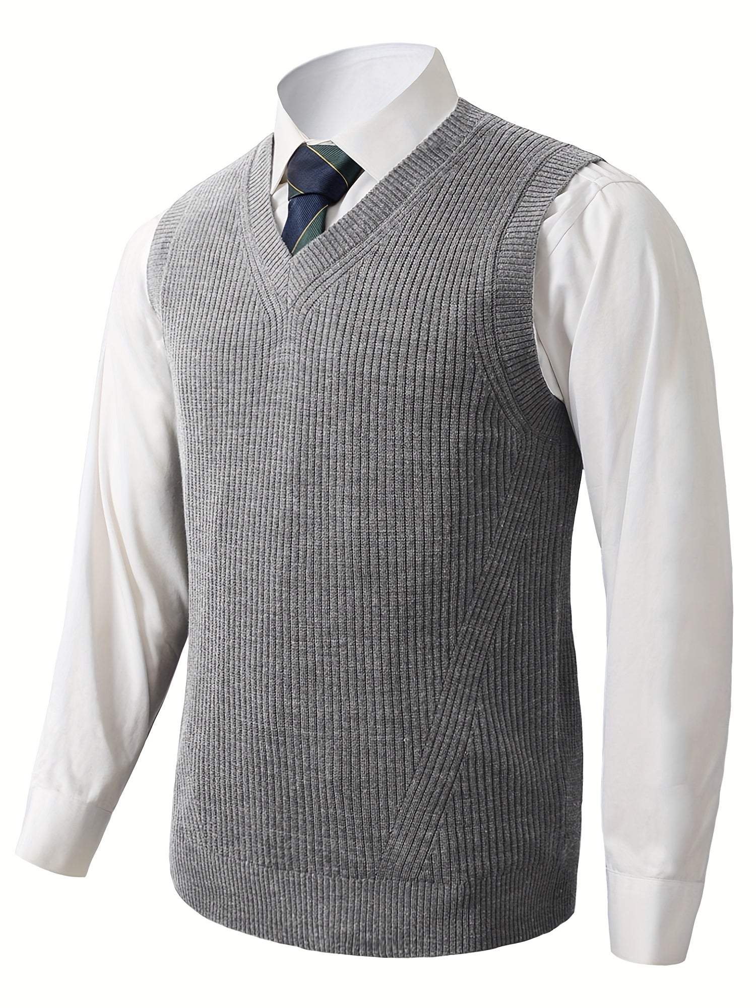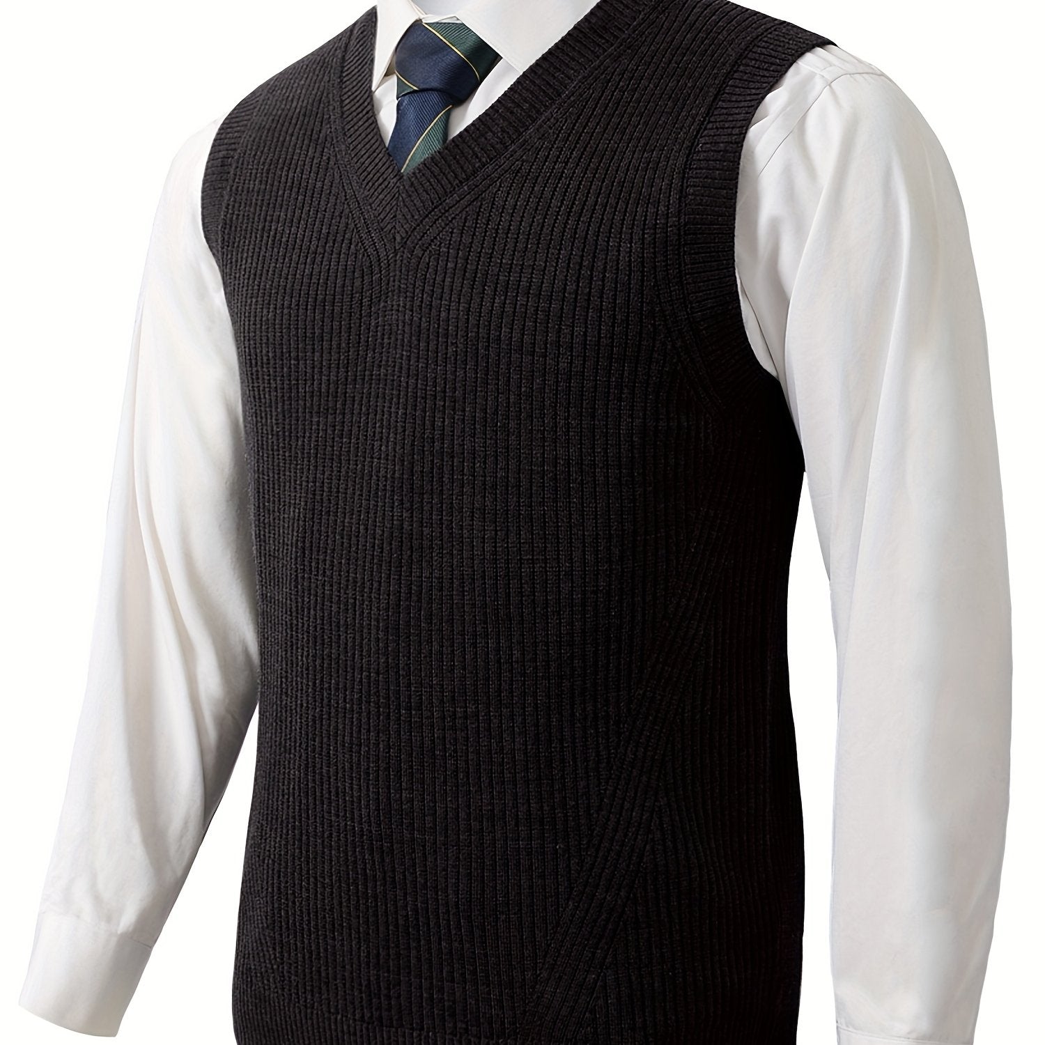 Erkaklar uchun yelkasiz V-shaklidagi trikotaj sviter vest