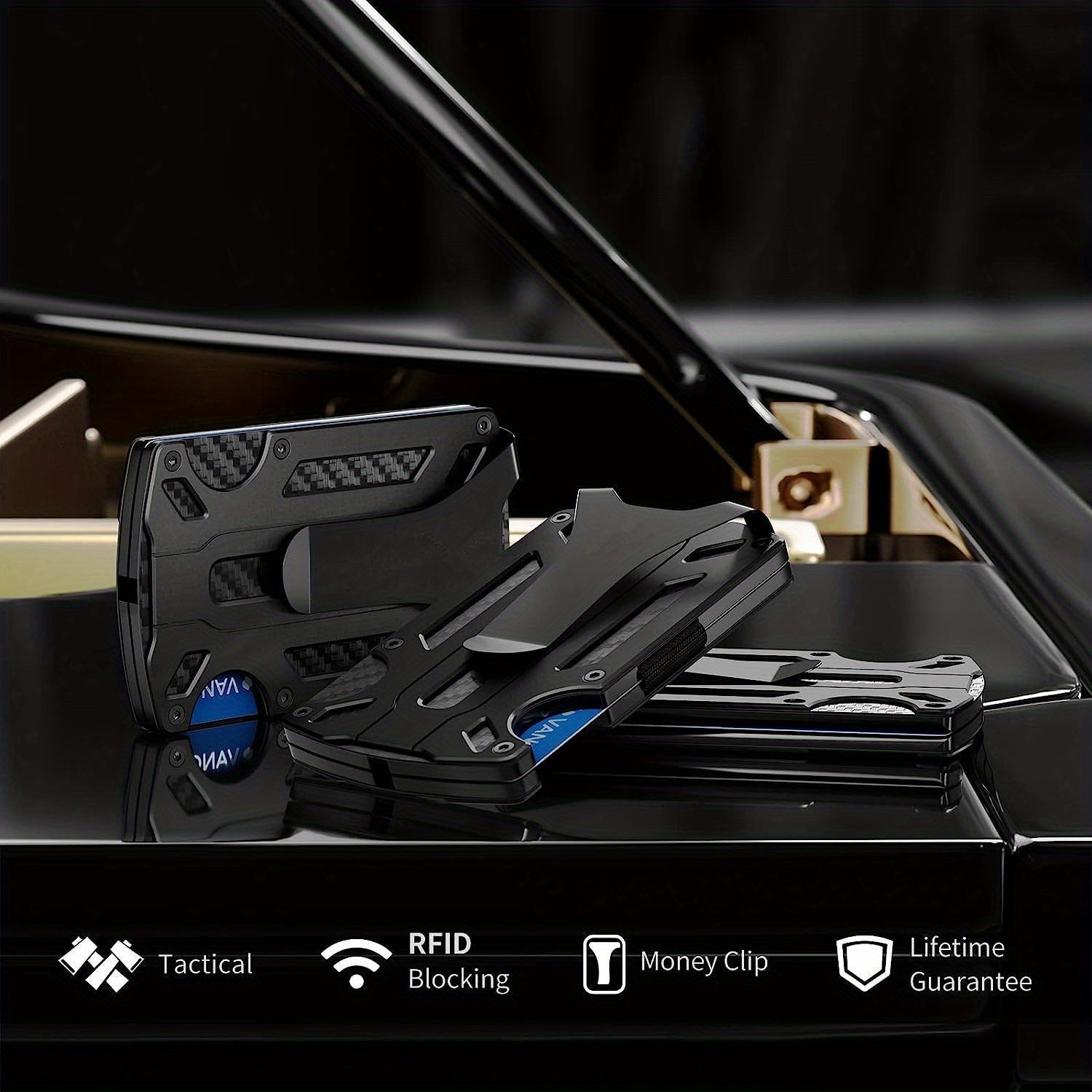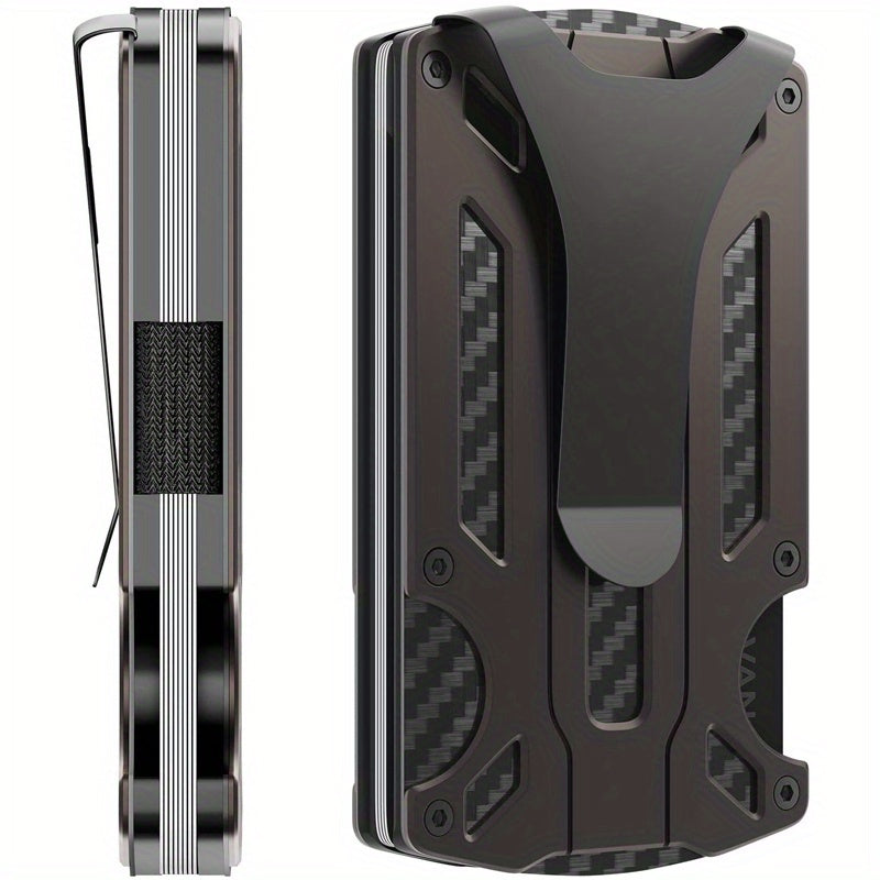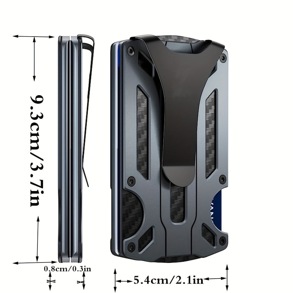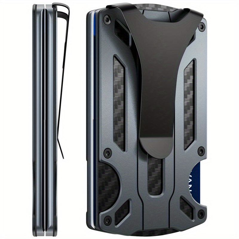 Yengil va zamonaviy RFID-blokirovka qiluvchi hamyon erkaklar uchun mo'ljallangan. Kredit kartalari uchun joylar va pul klipi bilan old tomondan cho'zilgan dizayn. Mustahkam alyuminiy qotishmasidan tayyorlangan. Otangiz uchun mukammal sovg'a.