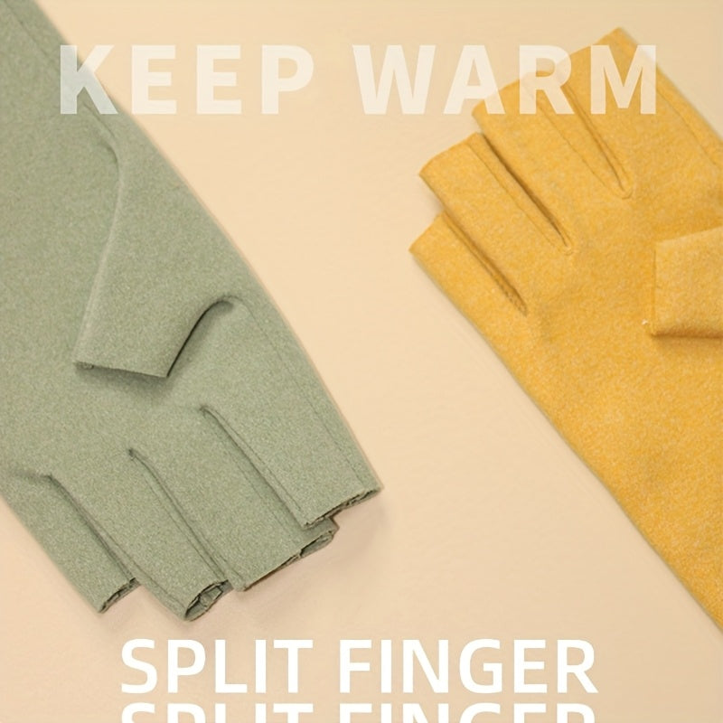 Qishki ofis ishlari uchun ingichka va iliq yarmig'ich qo'lqoplar, sensorli ekran yozuvi uchun issiqlik to'qimasi materialidan tayyorlangan.
