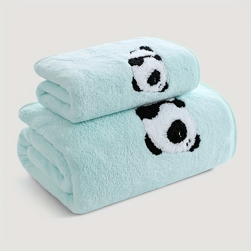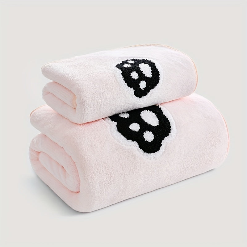 Mushuklar uchun yumshoq va singdiruvchi panda sochiq to'plami, koral velur materialdan tayyorlangan - kattalar uchun yuz va tana yuvish va hammomda foydalanish uchun ideal.