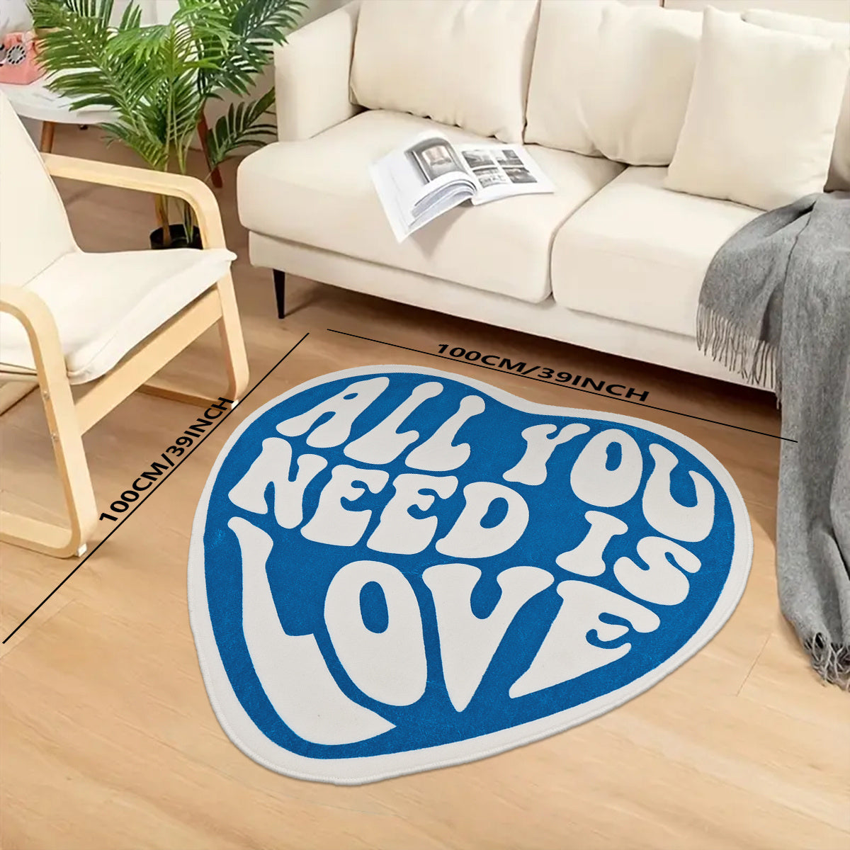 Yumshoq velur yurak shaklidagi gilam yotoq xonasi va mehmonxona uchun, sirpanmaydigan, 8mm qalinlikda
