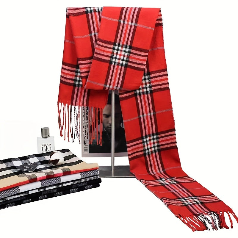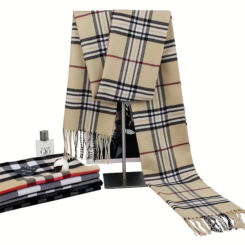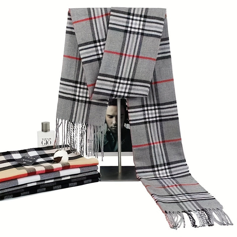 Yumshoq va iliq to'qilgan polyester erkaklar shali klassik tekis chiziqli dizayn va qirra tafsiloti bilan - 1 dona klassik uslubdagi shal.