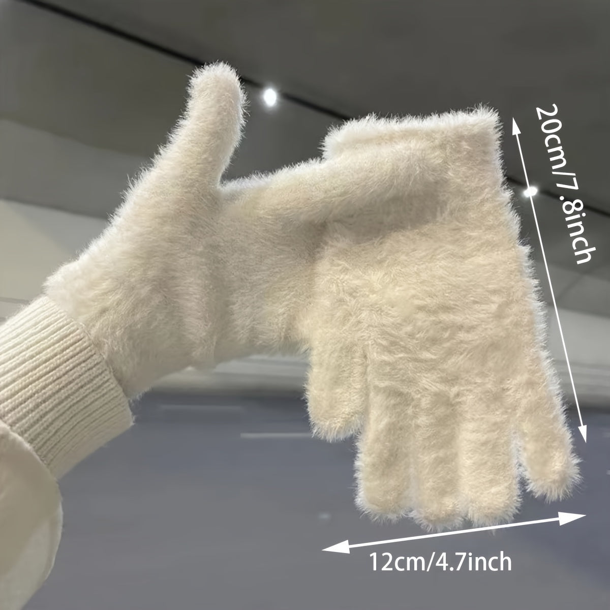 Ayollar uchun yumshoq soxta quyon junidan tayyorlangan plush qo'lqoplar - yoqimli bo'linma barmoq uslubi, qishki velosipedda qulay va ob-havoga chidamli, turli ranglarda mavjud
