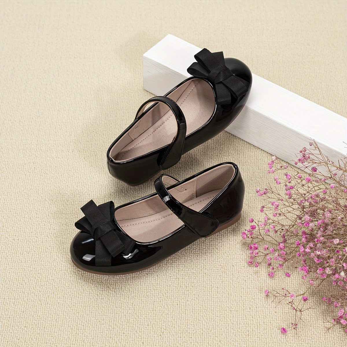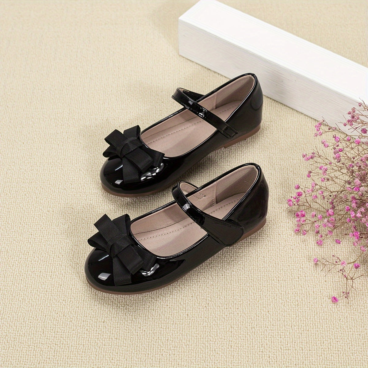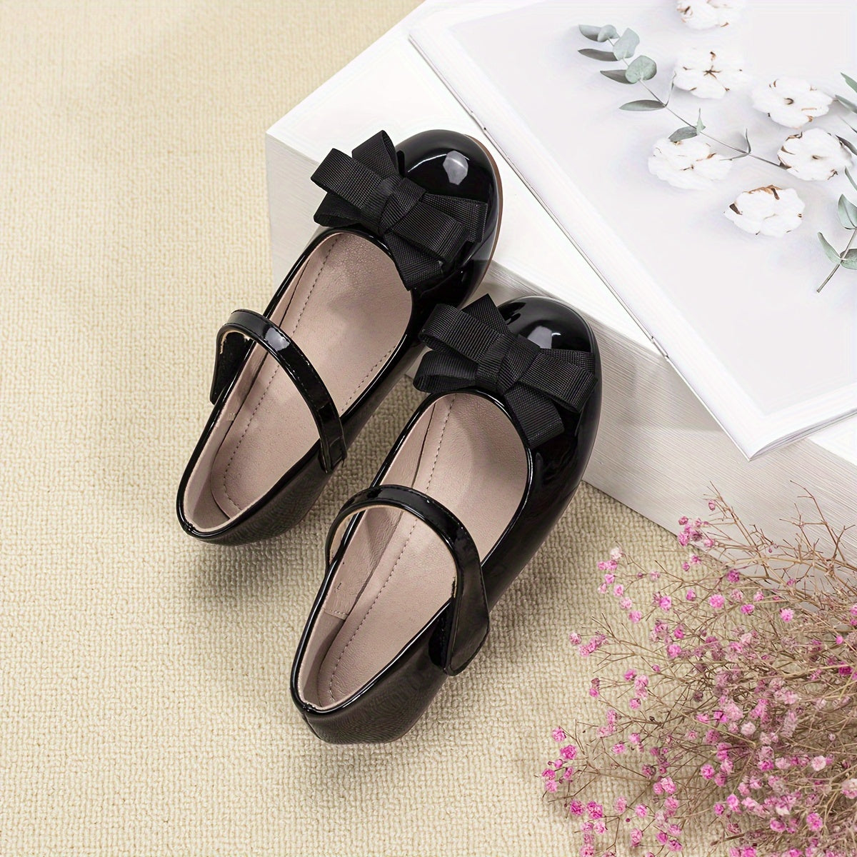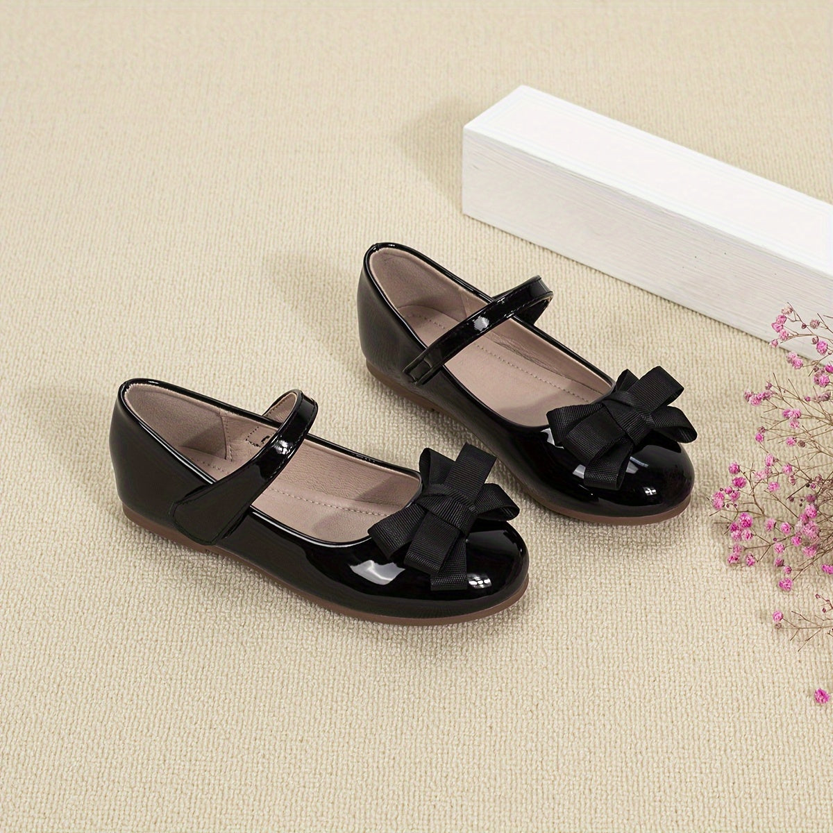Qizlar uchun bog'ichli yumshoq tekis poyabzal, norasmiy yoki rasmiy tadbirlar uchun mukammal.