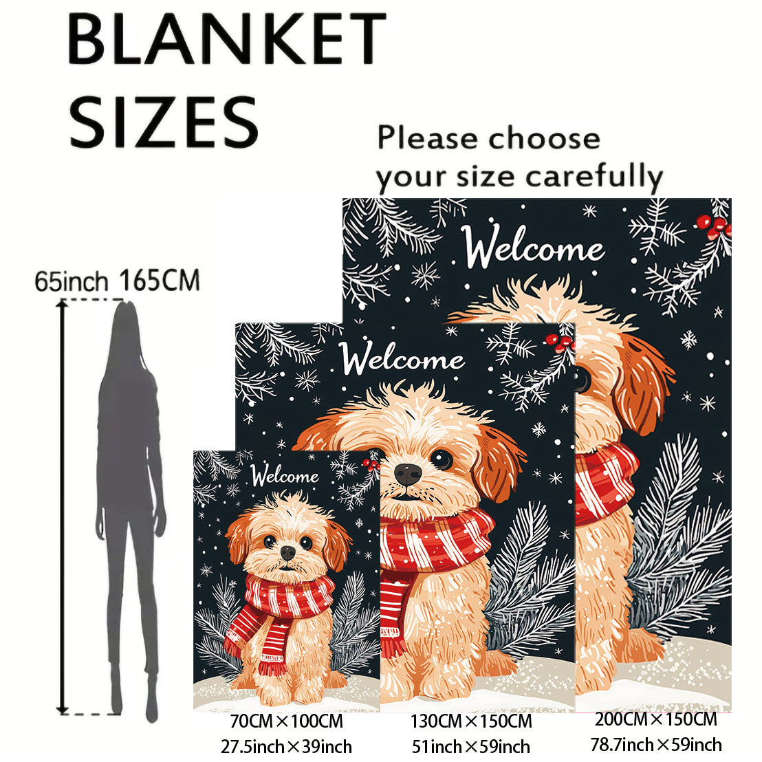 Yumshoq to'qilgan polyester tashqi ko'rinishi qizil va oq sharfli Rojdestvo itini aks ettiradi. Yotoq, divan, ofis yoki sayohat paytida foydalanish uchun mos. O'rta asr uslubidagi dizayni va yengil 200-250g matosi bilan barcha mavsumlar uchun mukammal.