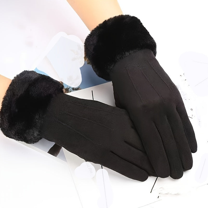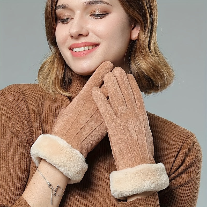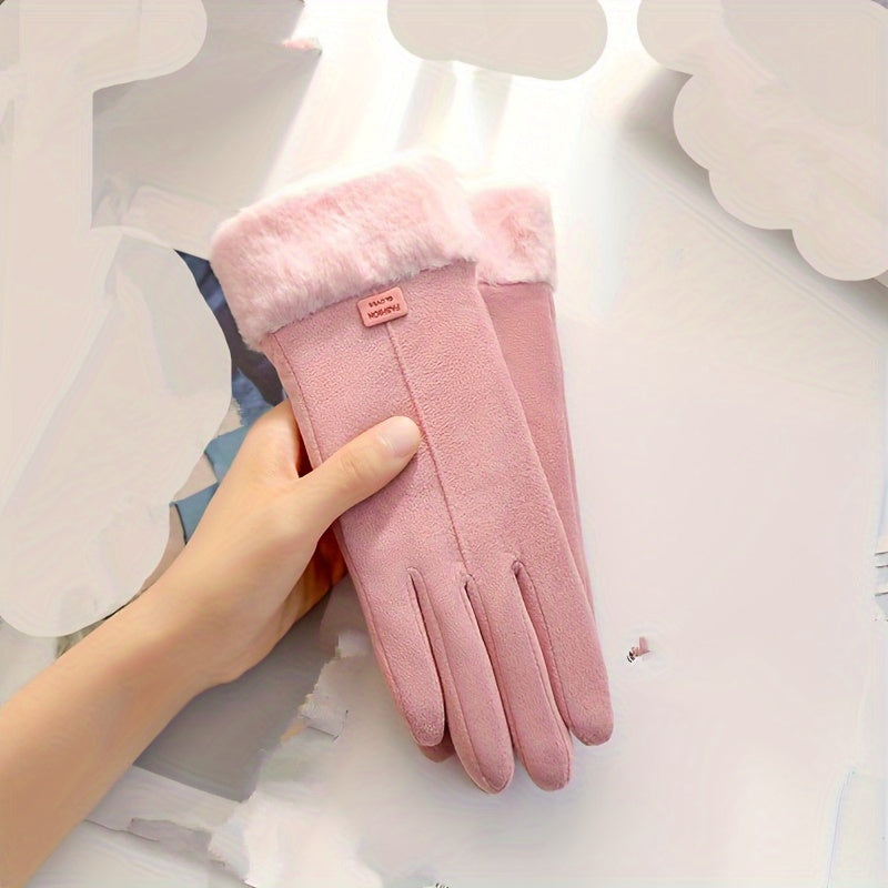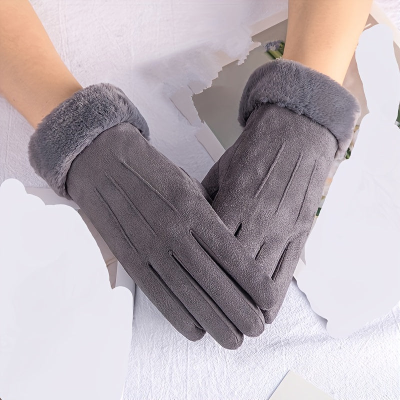 Yumshoq Plush Qulf Suede Qo'lqoplar, Qattiq Rangda, Qo'shimcha Issiqlik Uchun Velur Bilan - Ayollar Uchun Kuz va Qish Qo'lqoplari, Shamol va Sovuqdan Himoya Uchun