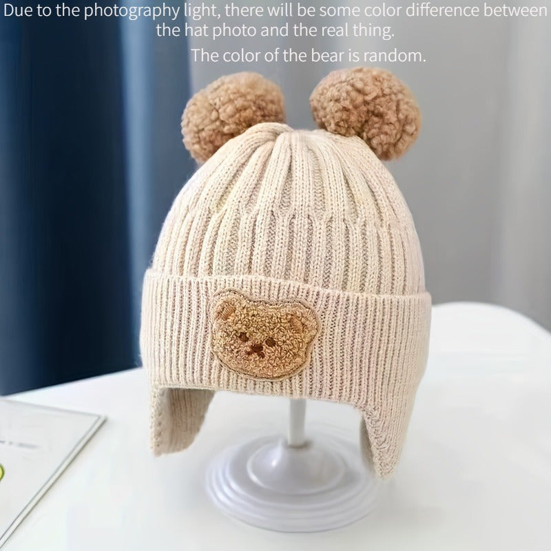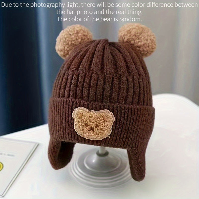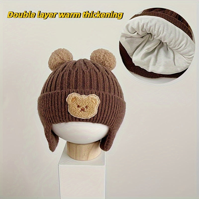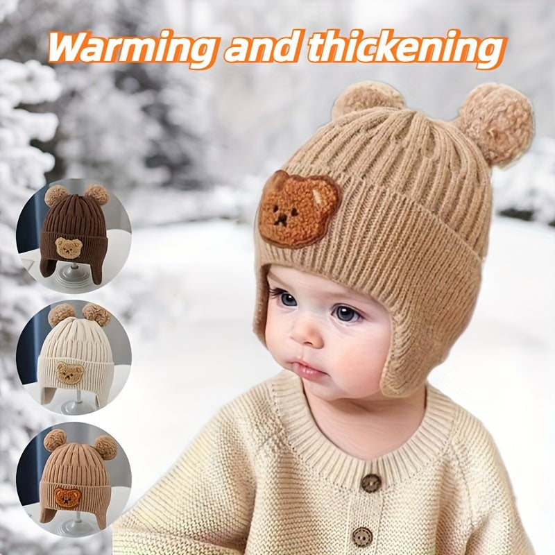Yosh bolalar uchun qulay ayiq mavzusi va quloqni isituvchi bilan yumshoq polyester trikotaj shlyapa, 0-3 yoshdagi o'g'il va qizlar uchun mukammal qish sovg'asi. Xaki, qahva va ivori ranglarida mavjud.