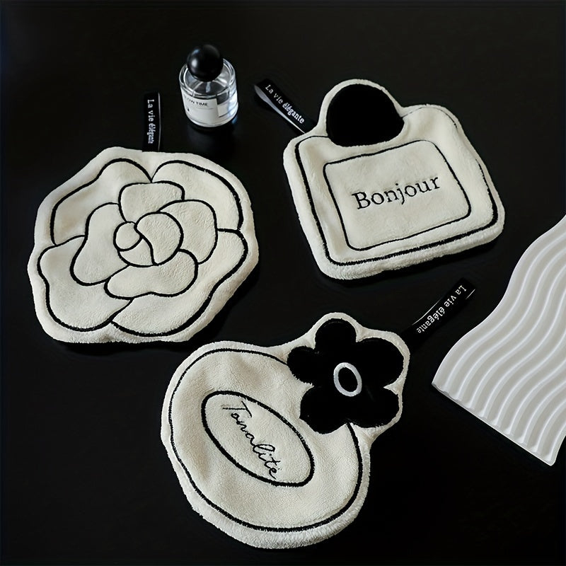 Yumshoq, tez quriydigan kameliya qo'l sochiq, parfyum shishasi dizayni bilan, oshxona va hammom uchun super singdiruvchi mikrofiber materialidan tayyorlangan.