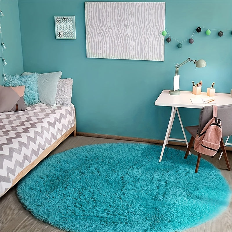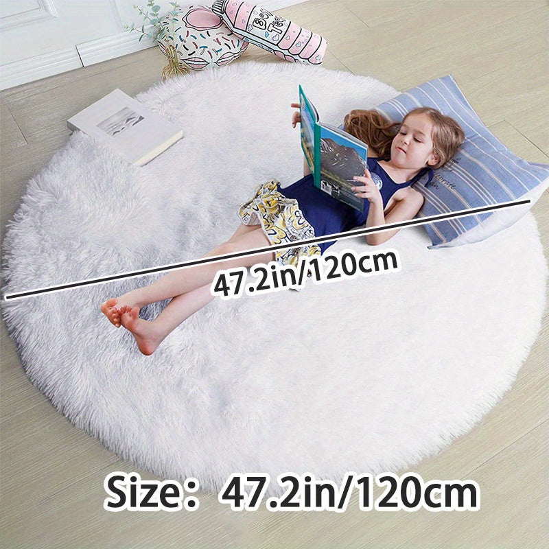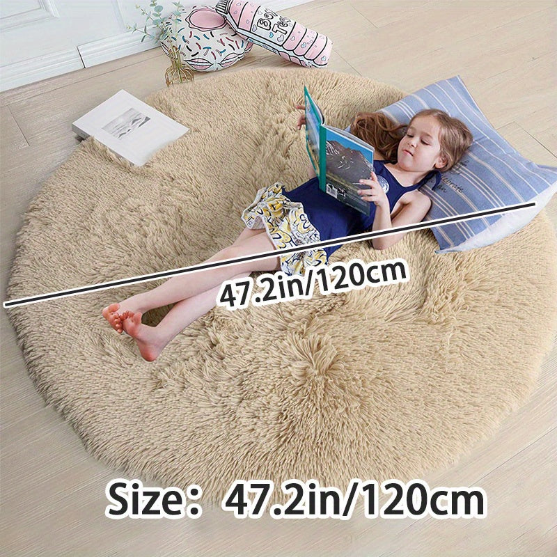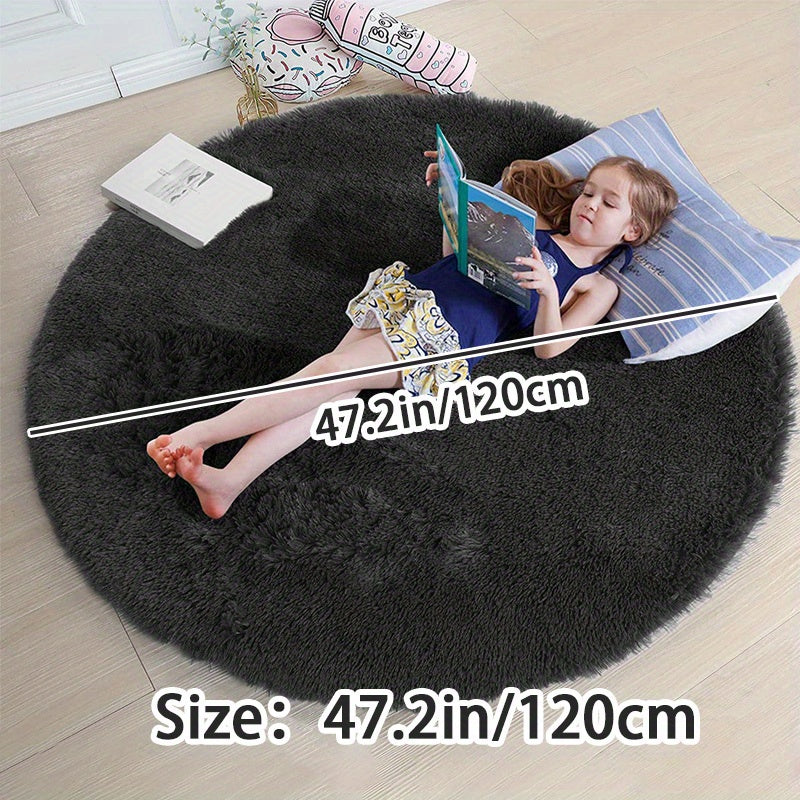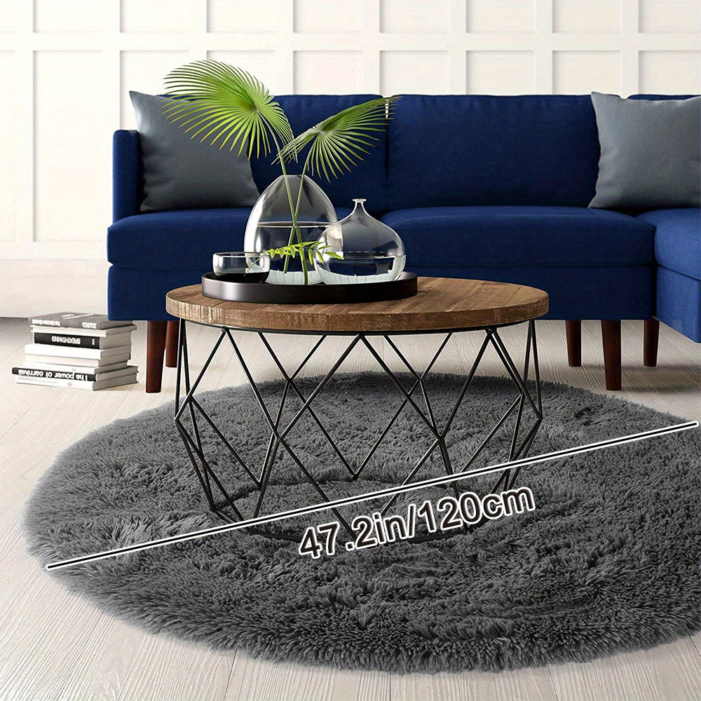 Kulrang Shaggy dumaloq gilam, mashina bilan yuvish mumkin, yumuşoq va molmolli xona gilami uchun yotoqxona