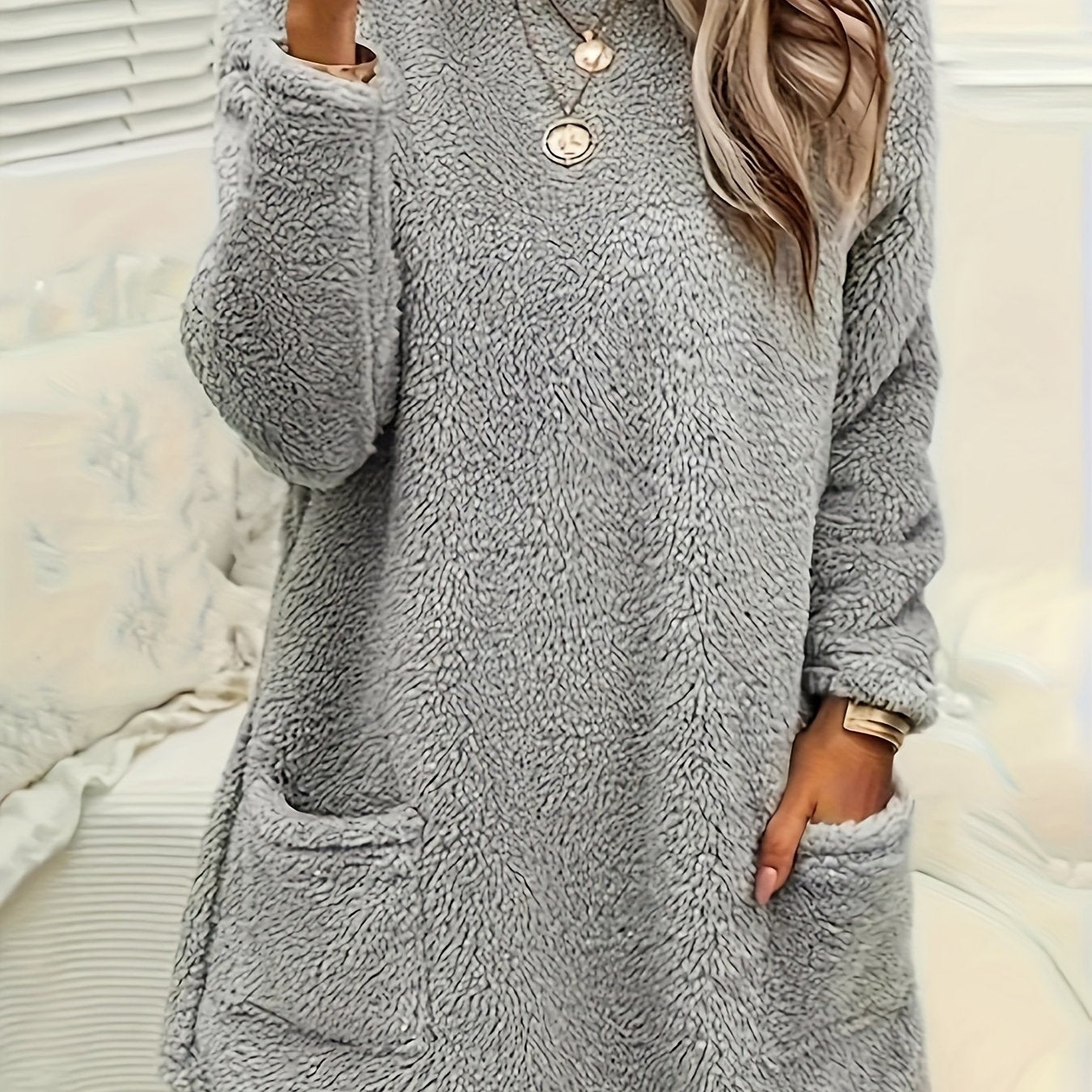 Yumshoq teddy fleece pullover, cho'ntaklar bilan - ayollar uchun qulay loungewear, mashinada yuvish mumkin.