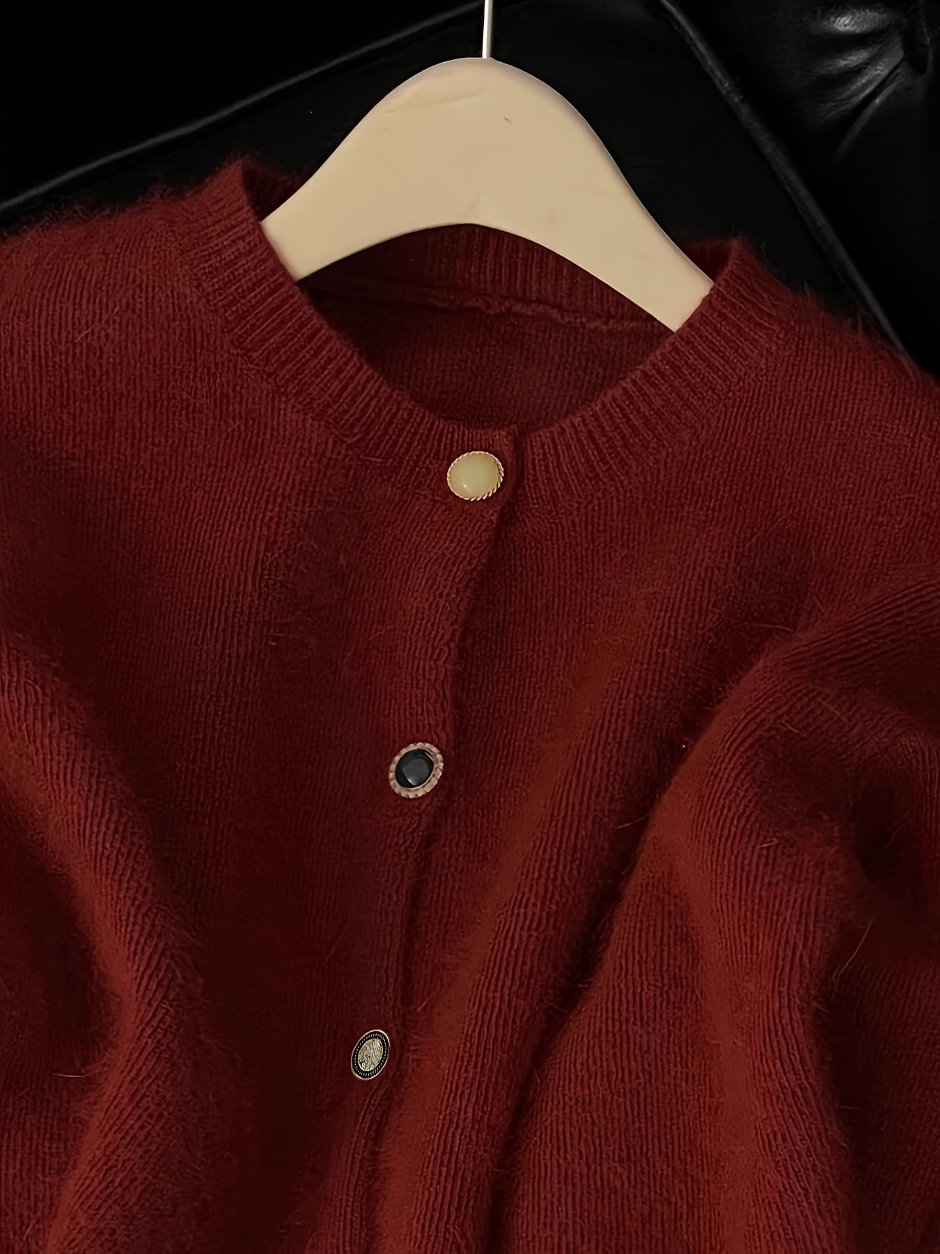 Yagona rangli tugmachali oldi trikotaj kardigan, bahor va kuz uchun nafis uzun yengli kardigan, ayollar kiyimi.