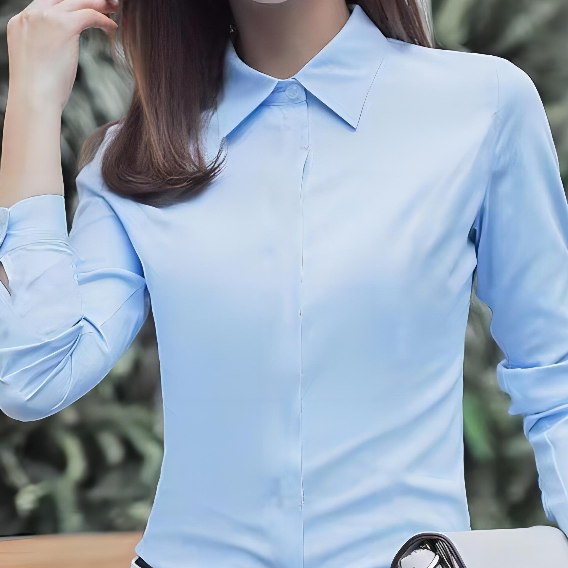 Biznes formal manjetli, bir rangli tugmachali old qism ko'ylak, ish va ofis kiyimlari uchun mukammal.