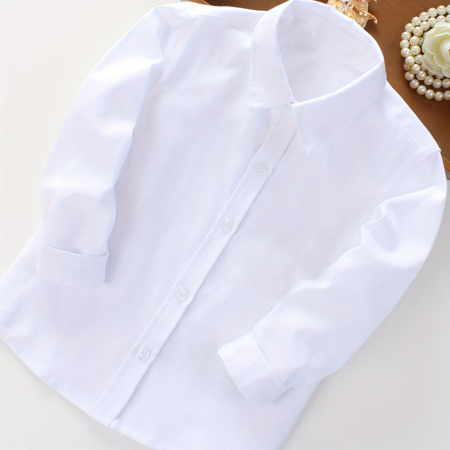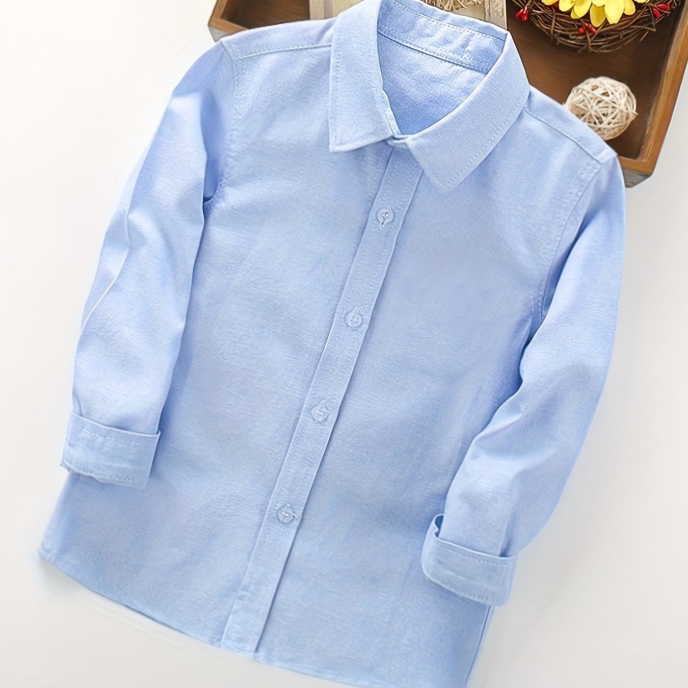 O'g'il bolalar uchun bir rangli rasmiy ko'ylak ko'ylaklar - bahor va kuz mavsumi uchun uzun qo'lqopli tugmachali yuqorilar.