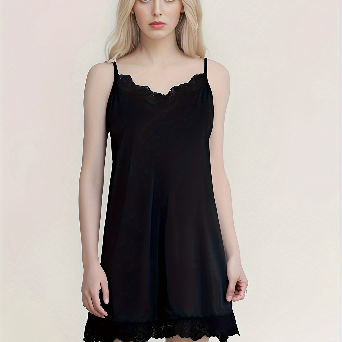 Ayollar uchun qulay uyqu kiyimi sifatida V-shaklidagi bo'yin va orqa qismi ochiq dizaynga ega mustahkam dantel trimli slip ko'ylagi
