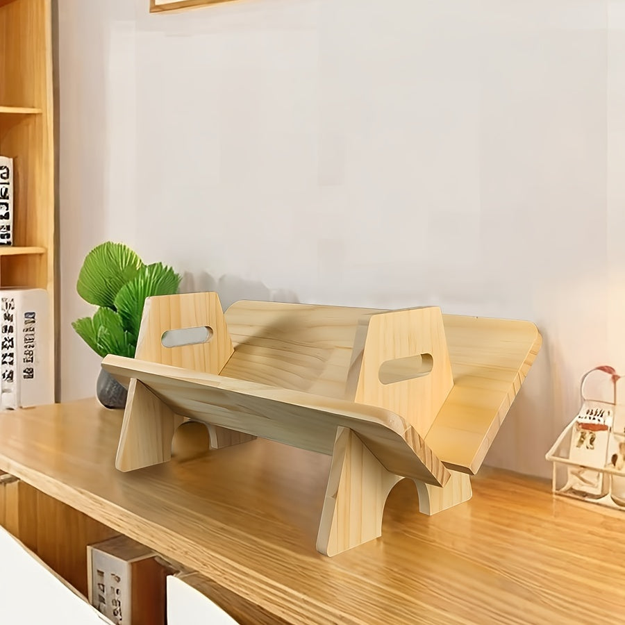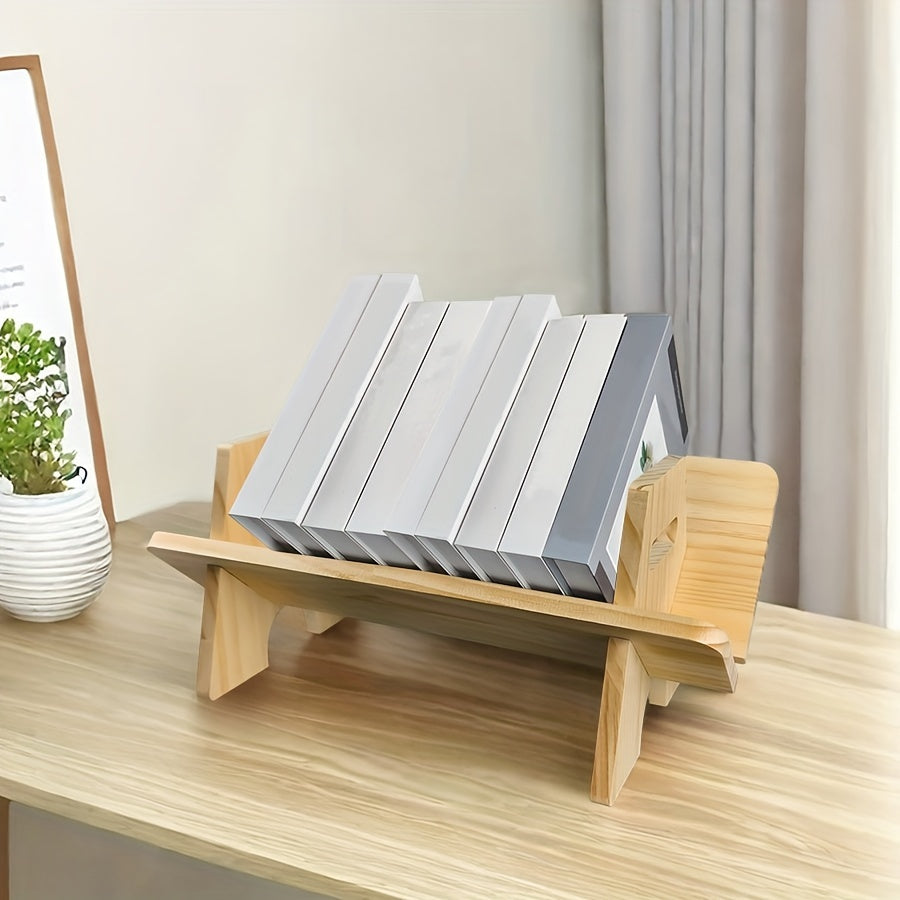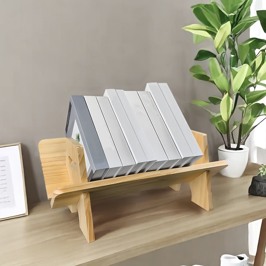 Qattiq Yog'och Stol Kitoblik, Ofis Kitob Turg'ichi, Yotoqxona O'qish Saqlash Rack - Asl Yog'och Rangi, Yarmi Paket
