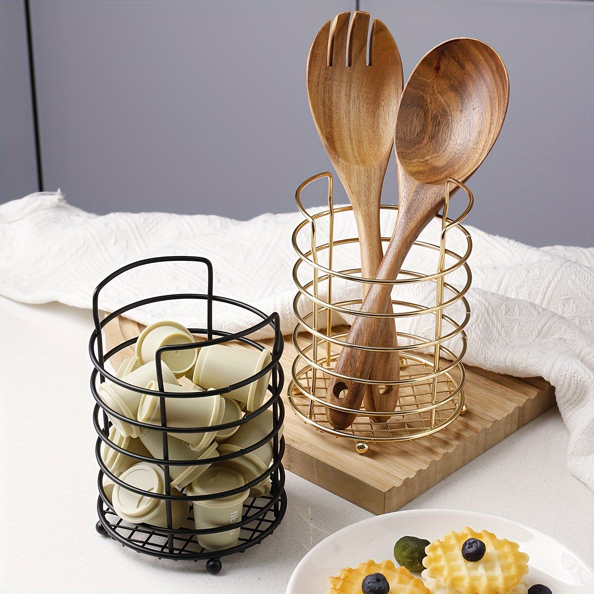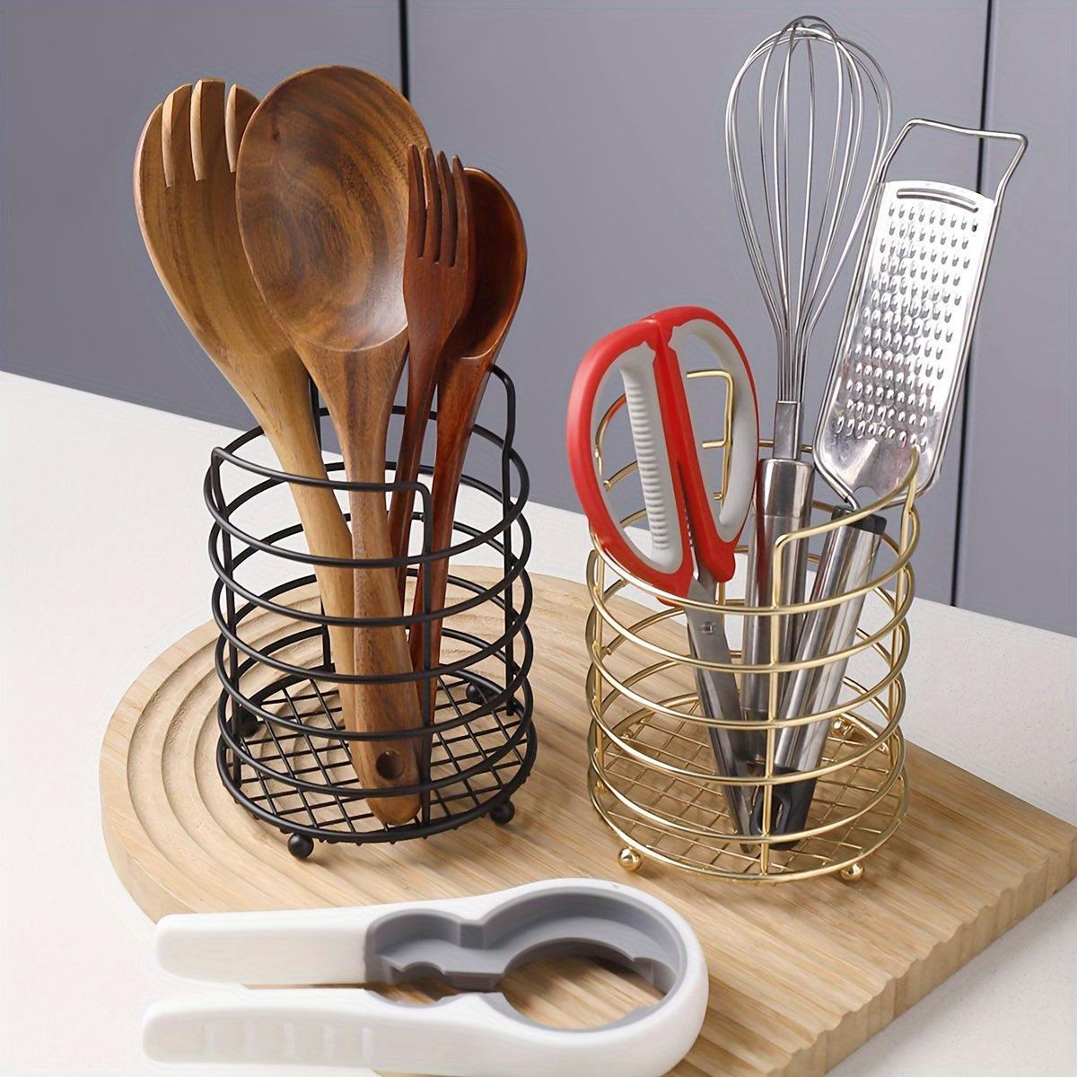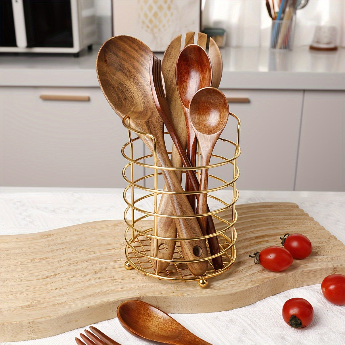 Murakkab oltin qoplamali temir oshxona asboblari ushlagichi: Pichoq va vilkalarni tartibda saqlash uchun ideal