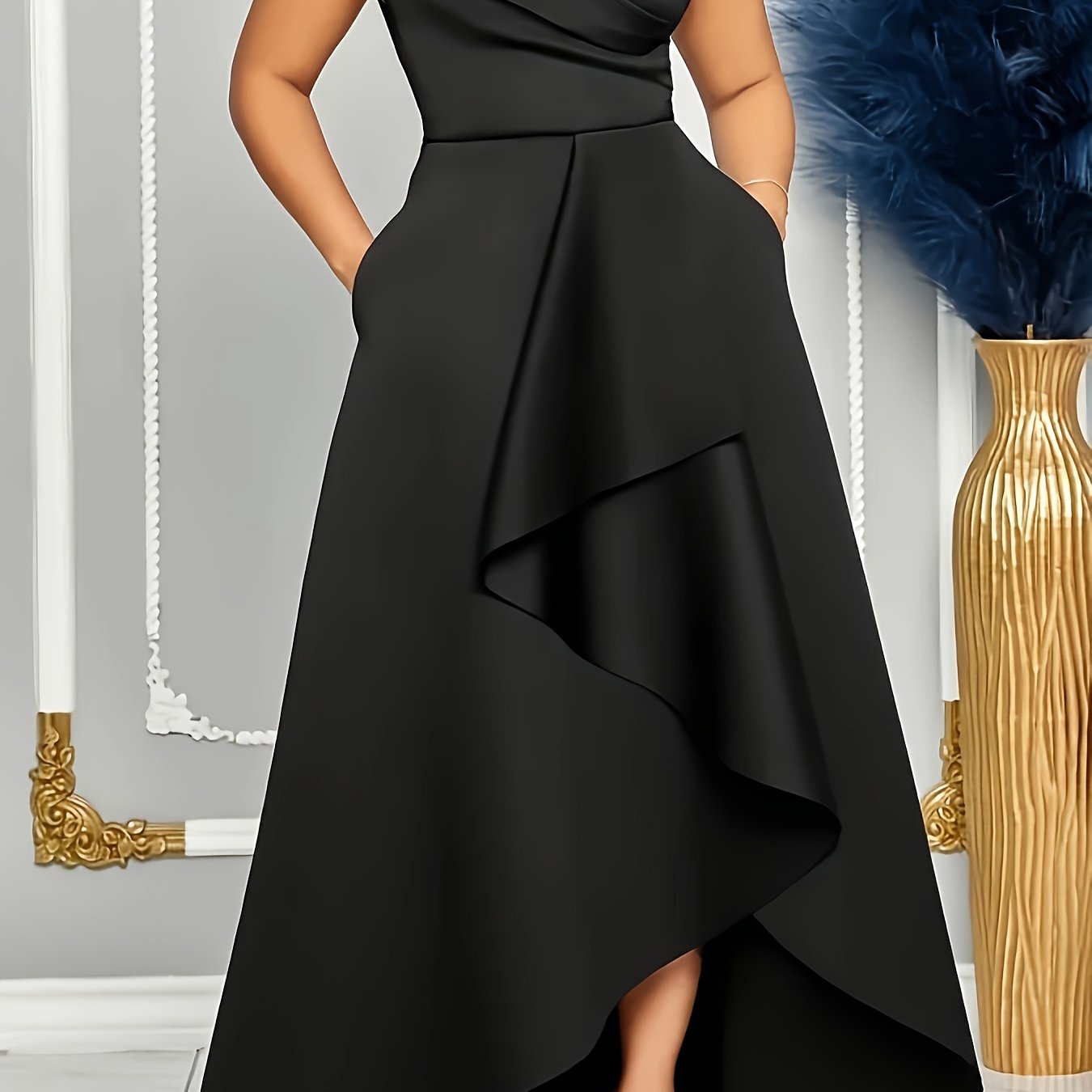 Polyester to'qimachilik matosidan tayyorlangan, ruffle detali va ozgina cho'zilishi bilan murakkab plus size V-yuqori ko'ylak. Bir rangda va barcha mavsumlar uchun mos.