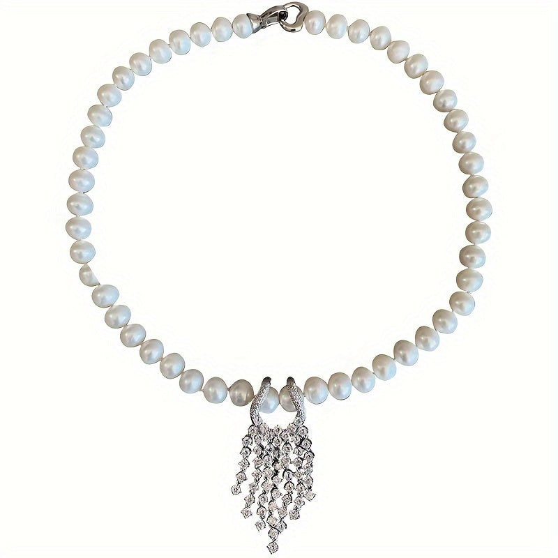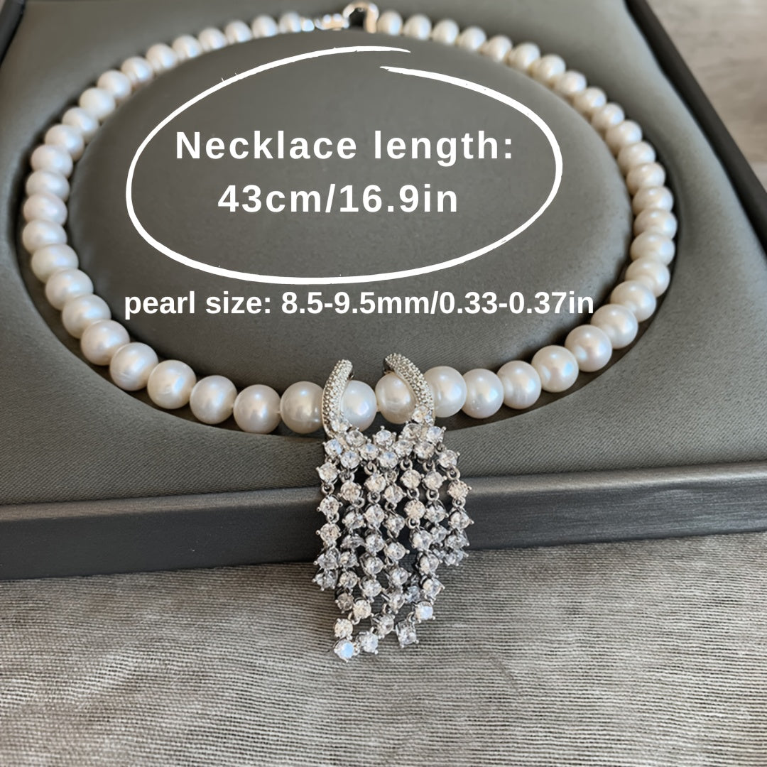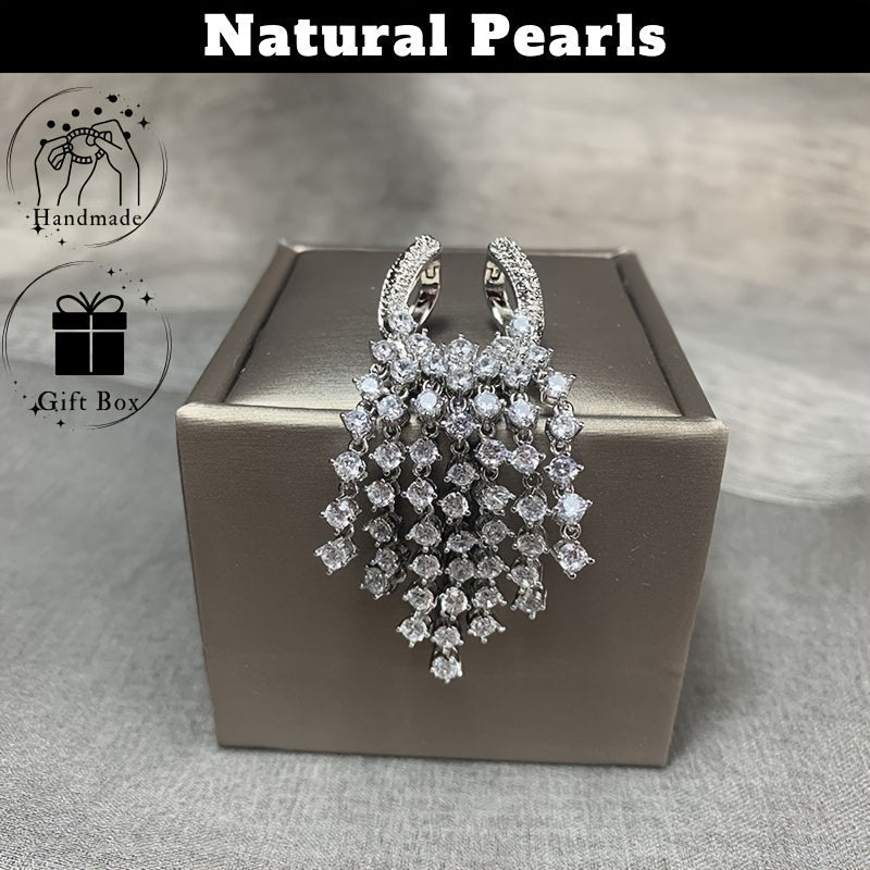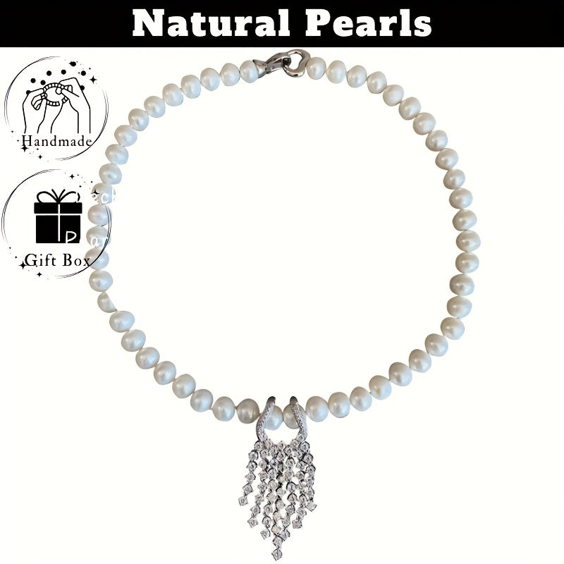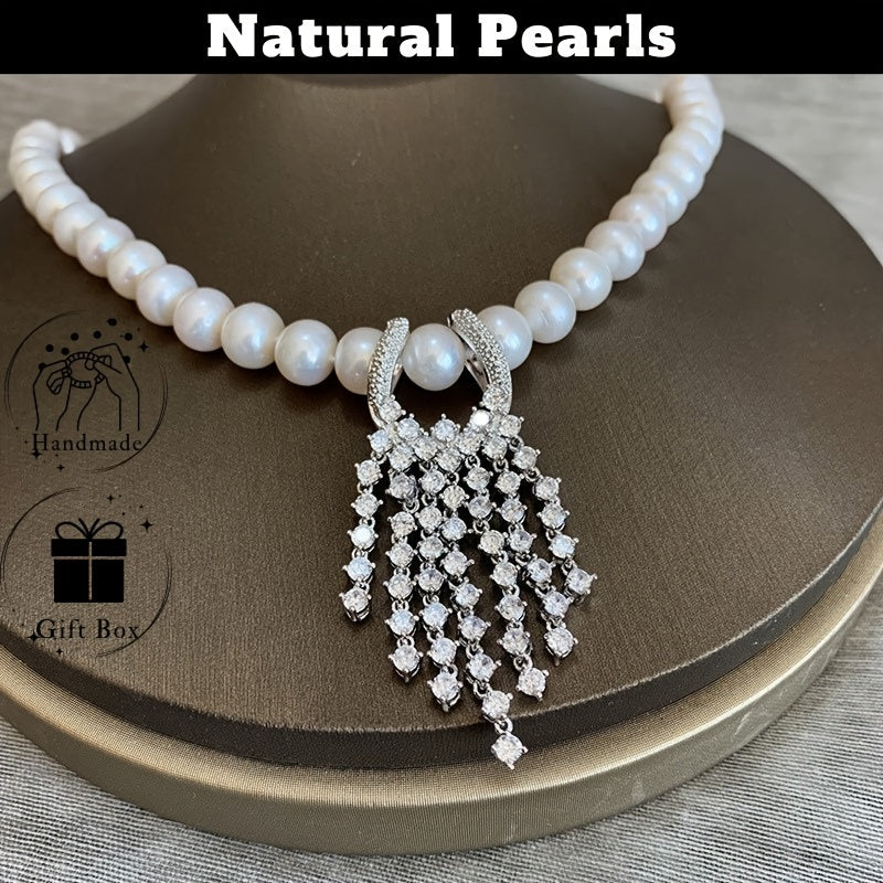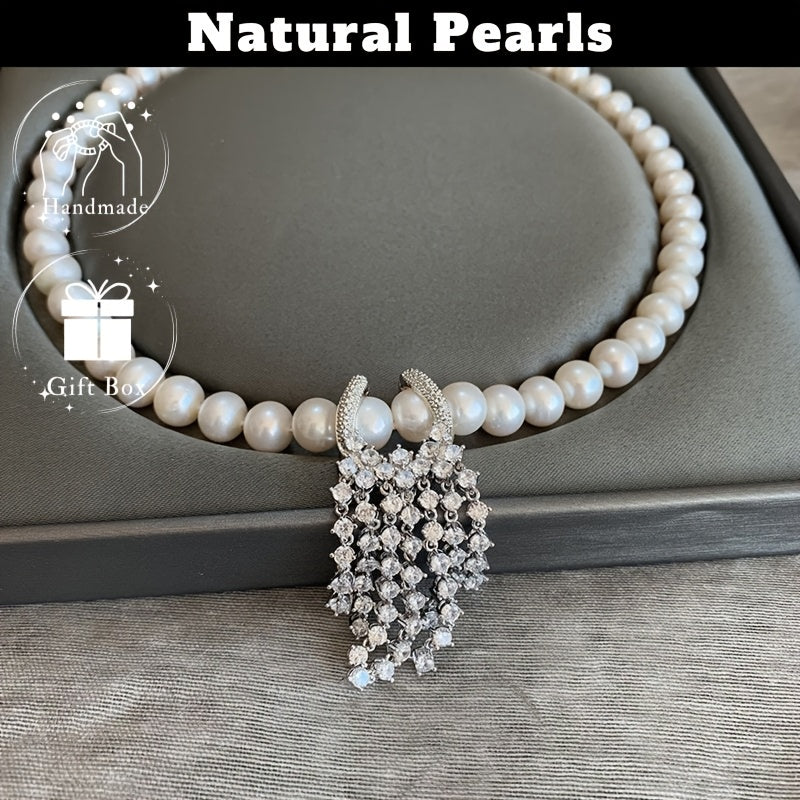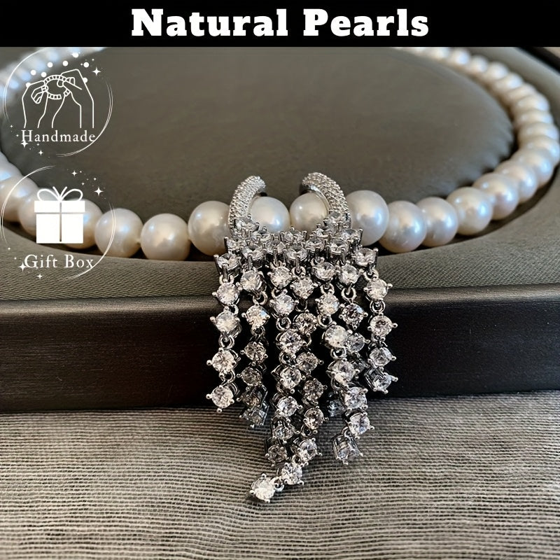 Murakkab Tasmali Marjon, Shirin Suv Marjonlari va Zirconiyalar bilan - O'ziga xos Kamchiliklarga ega Zamonaviy Yelka Marjoni, Rasmiy Tadbirlar va Har Kunlik Kiymak Uchun Ideal, Chiroyli Sovg'a Qutisida Keltiriladi
