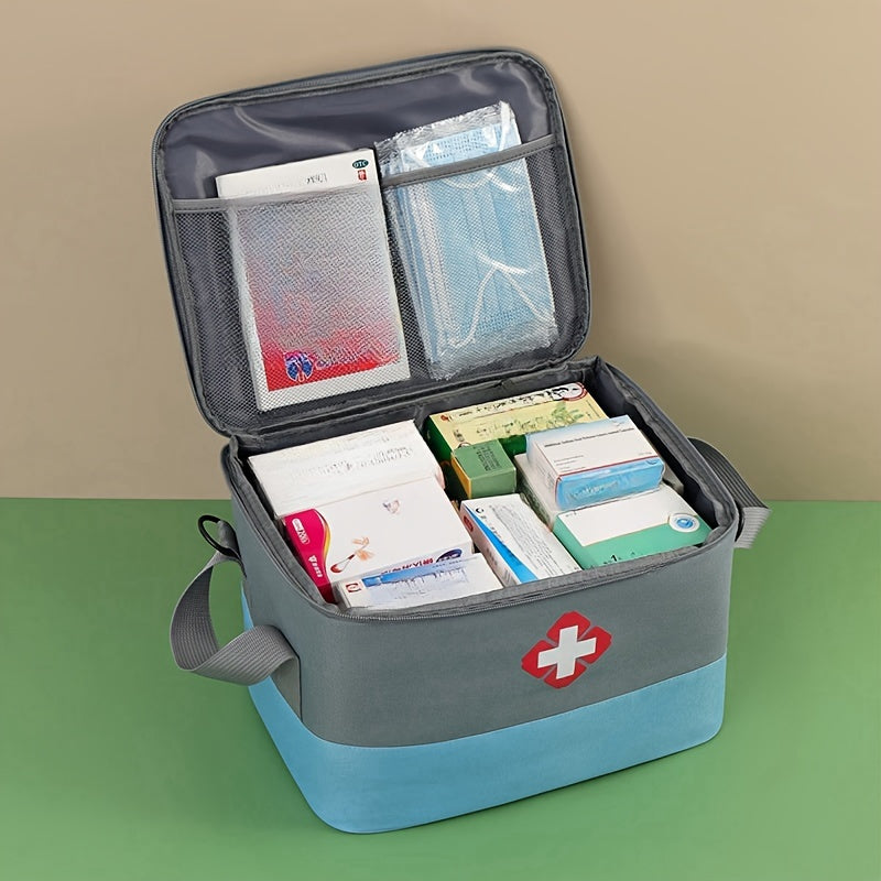 Keng dori saqlash sumkasi tutqichlar bilan - dori-darmonlar, gigiena vositalari va ofis jihozlari uchun qulay uy organizatori - yotoqxona, hammom, ofis va harakatda foydalanish uchun mukammal