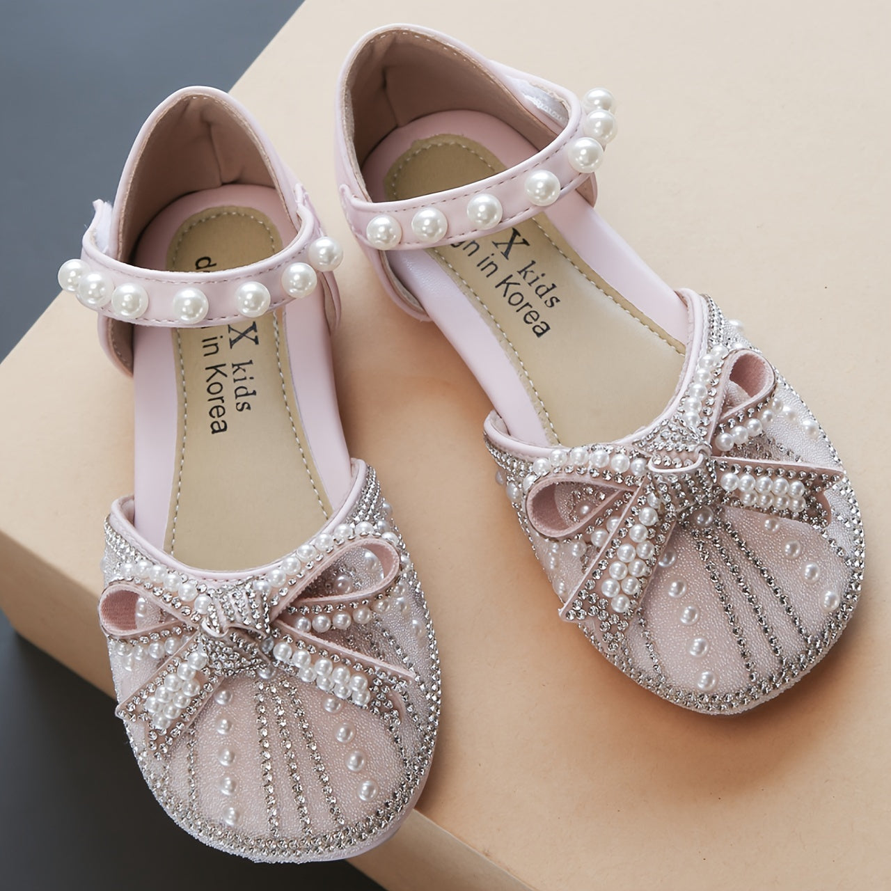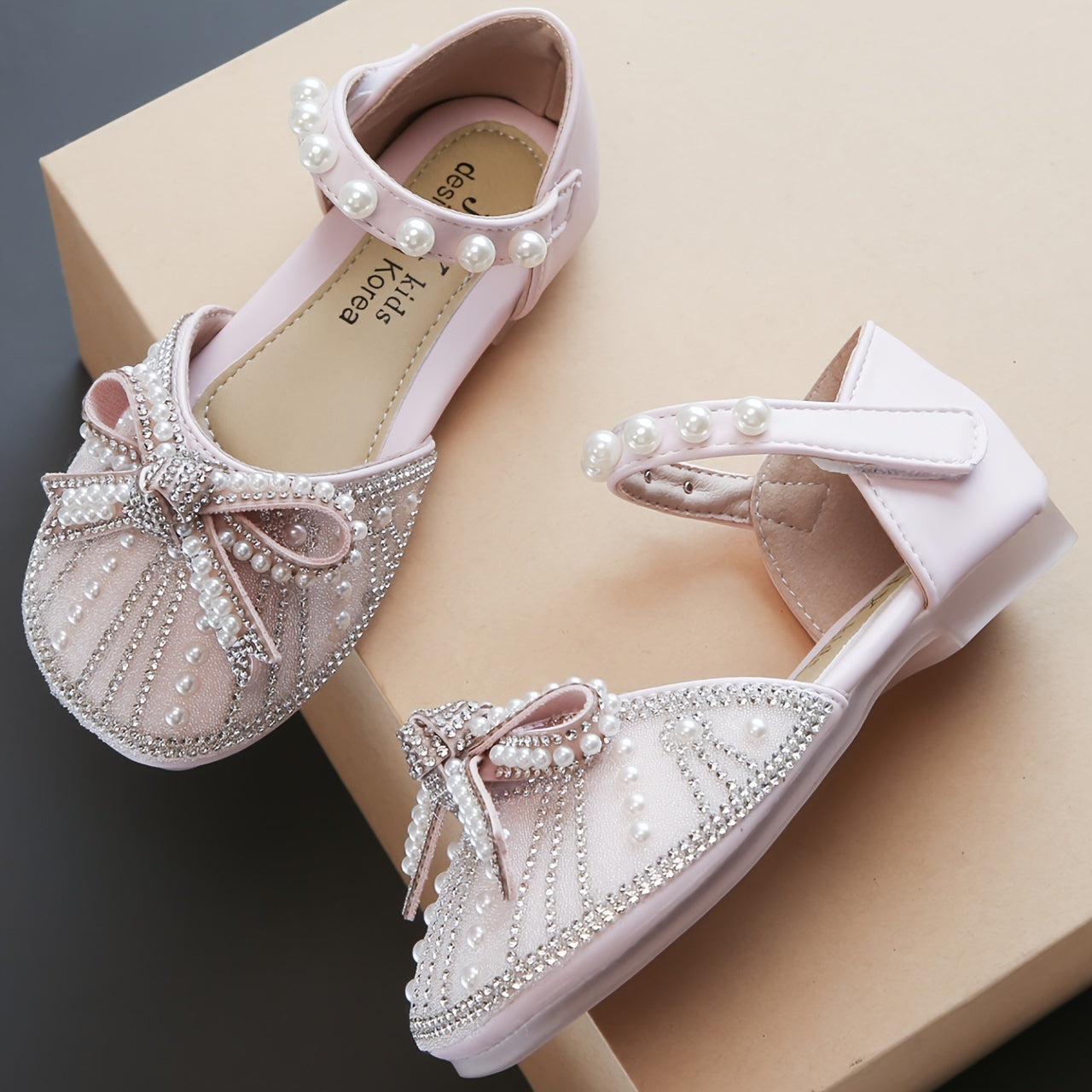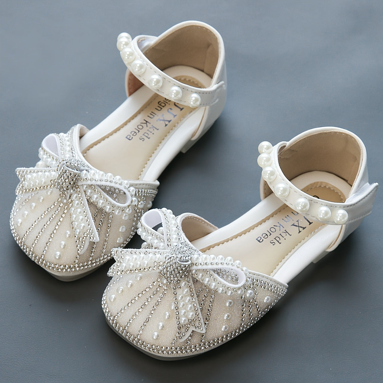 Yorqin kamon tugmachali tekis poyabzal, sozlanadigan tasma, 14 yoshgacha bo'lgan qizlar uchun kundalik kiyish uchun qulay, mustahkam TPR taglik.