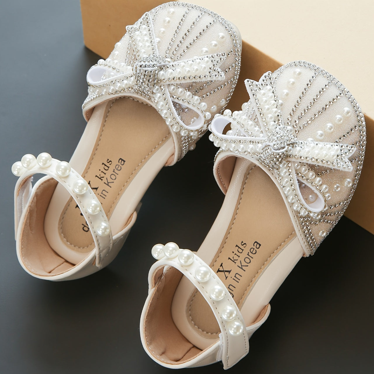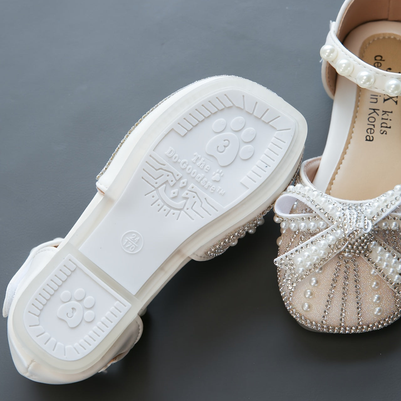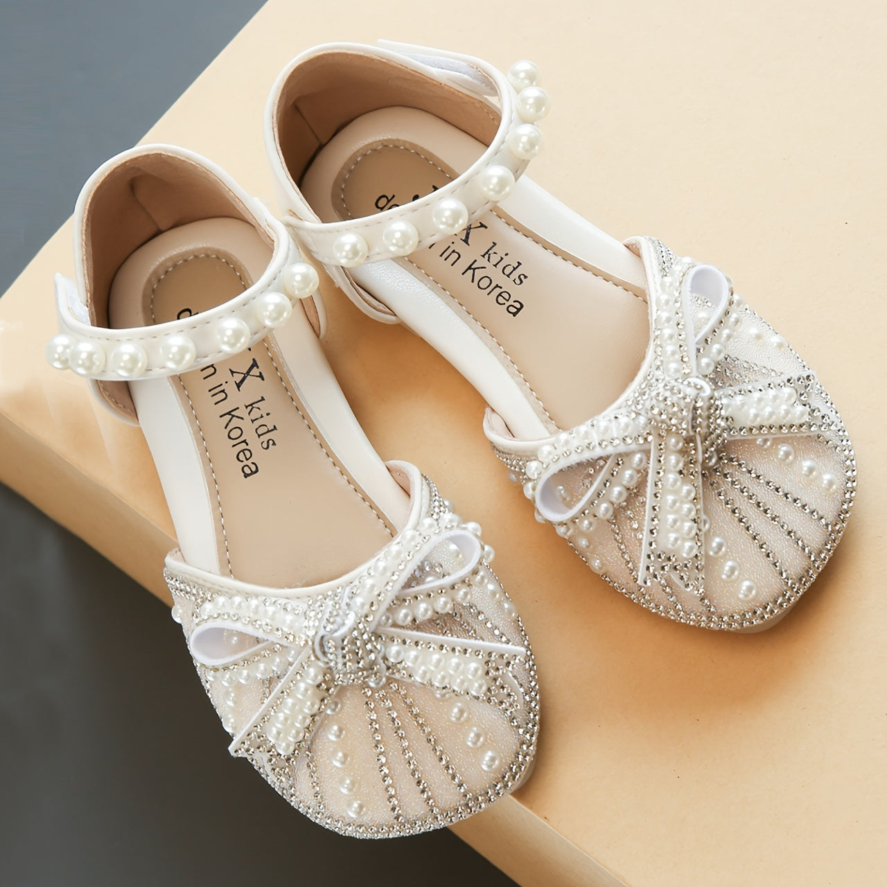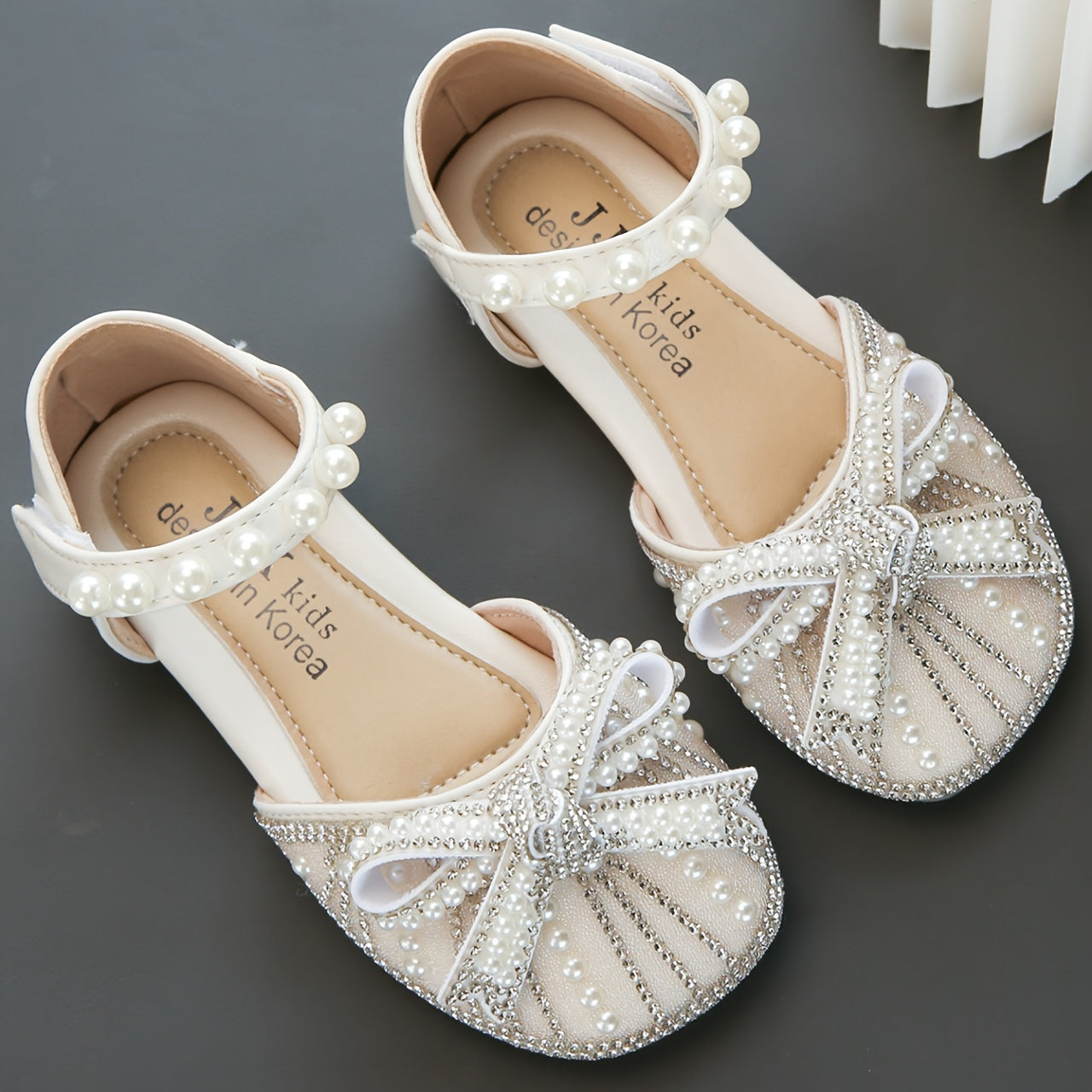 Yorqin kamon tugmachali tekis poyabzal, sozlanadigan tasma, 14 yoshgacha bo'lgan qizlar uchun kundalik kiyish uchun qulay, mustahkam TPR taglik.
