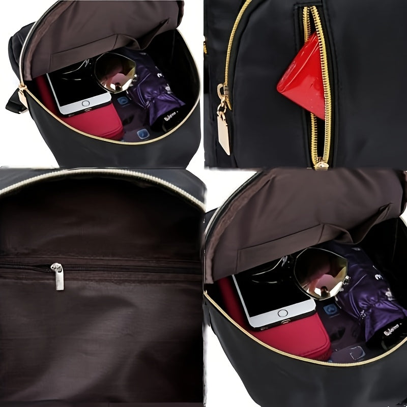 Sayohat va kundalik foydalanish uchun ko‘p bo‘limli qora va oltin polyester sumka