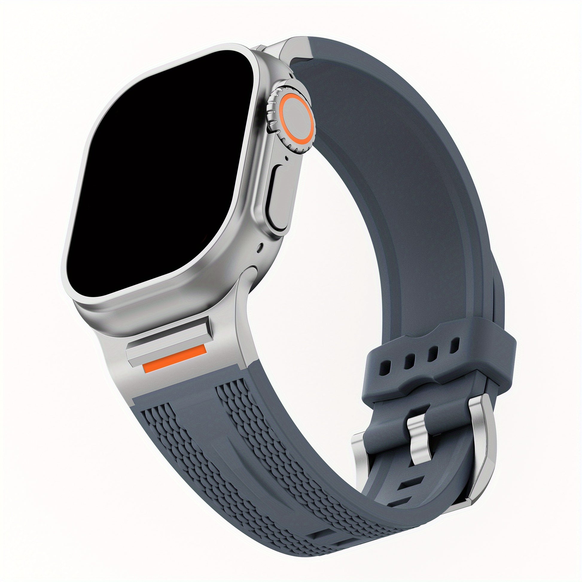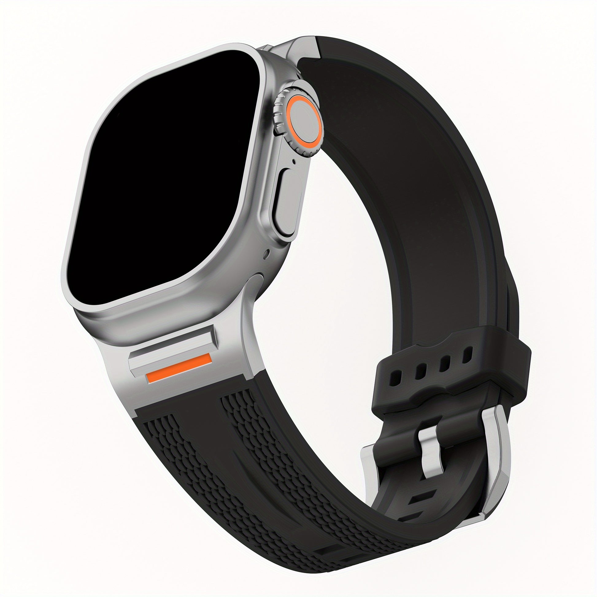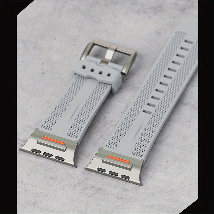 Apple Watch uchun zanglamas po'latdan adapterga ega sport silikondan yasalgan tasma, turli modellarga va o'lchamlarga mos keladi.