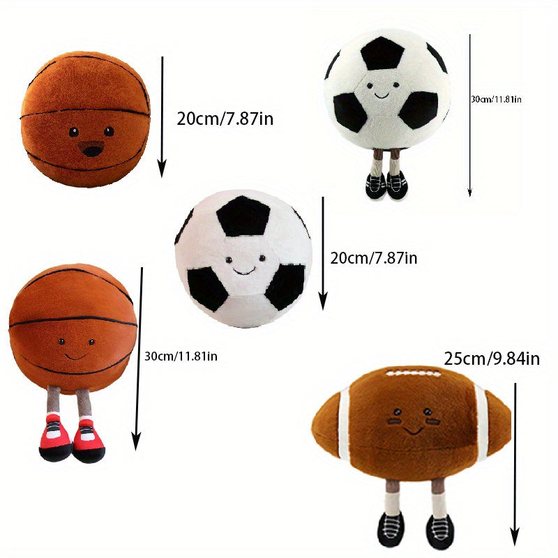 6-8 yoshdagi bolalar uchun sport mavzusidagi yumshoq o'yinchoq yostiqlar, preppy uslubi, polyester bilan to'ldirilgan, faqat qo'lda yuvish. Partiyalar, uy bezaklari, tug'ilgan kun sovg'alari uchun mukammal.