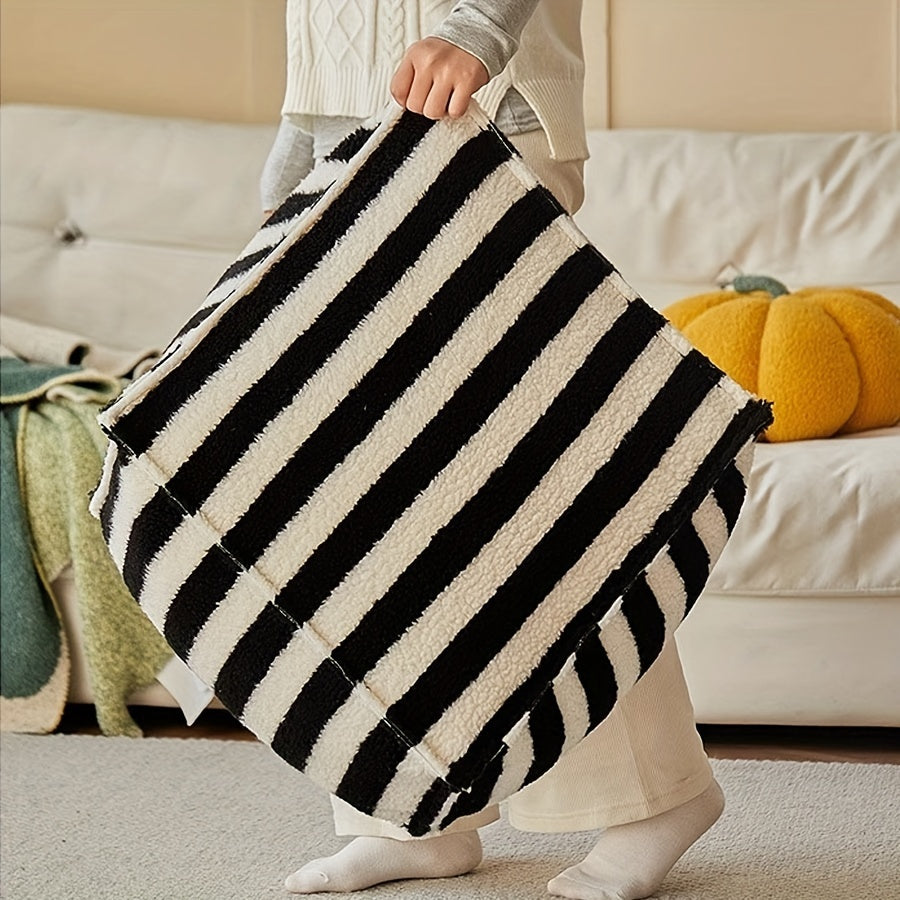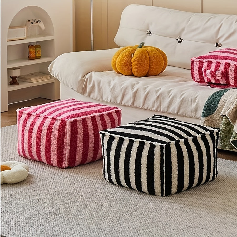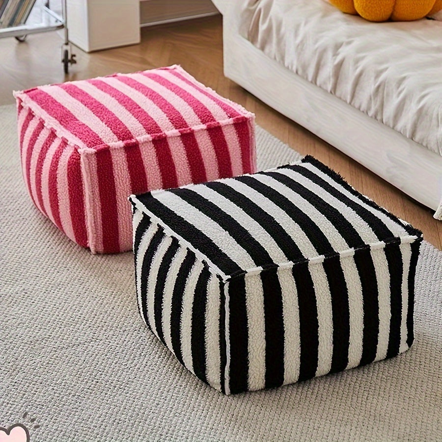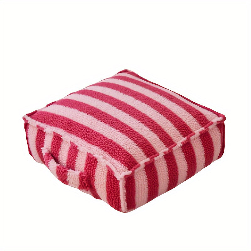 Katta To'rtburchakli Ko'pik O'tiradigan Yostiq, Qizil va Qora Chiziqli To'qima Dizayni - Yog'ochsiz, Elektrsiz, Yashash Xonasi, Pol, Poyabzal O'zgartirish, Tatami uchun - Yumshoq Chiziqli Shaklga ega Dekorativ O'tirish.