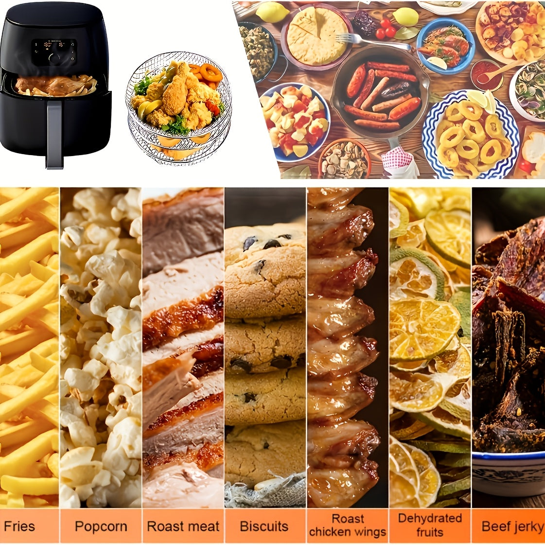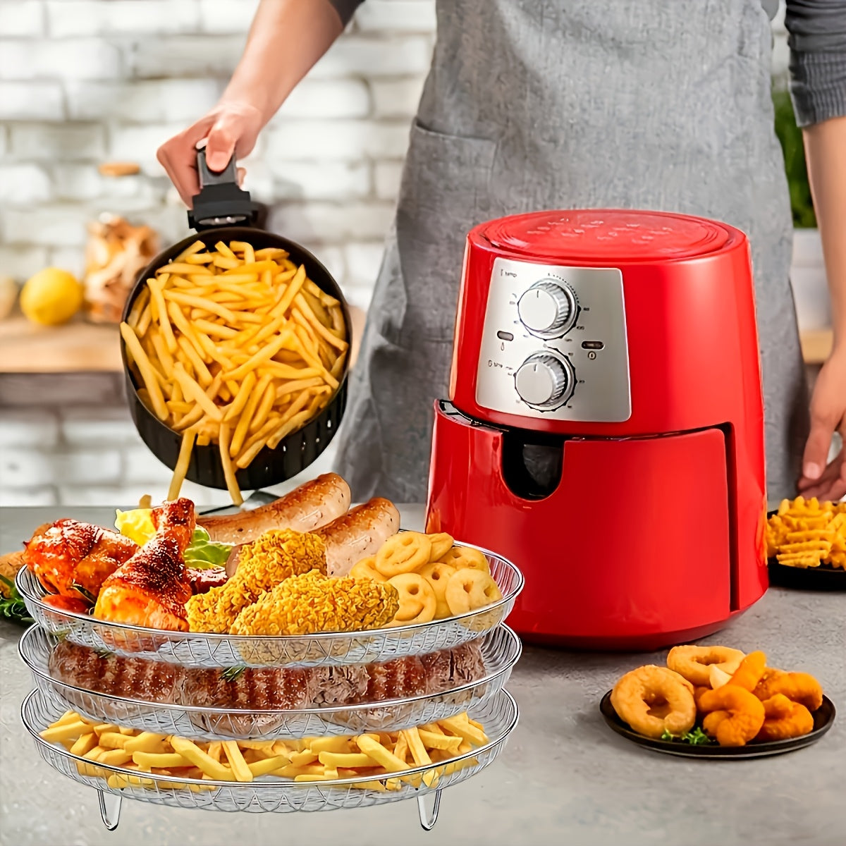 Havoni qovurish uchun stackable quritish racklari va savat tray - Uch qatlamni o'z ichiga oladi, idish-tovoq tozalash mashinasida yuvish mumkin bo'lgan aksessuarlar, ko'pchilik havoni qovurish, pech va bosimli pishirgichlar bilan mos keladi.