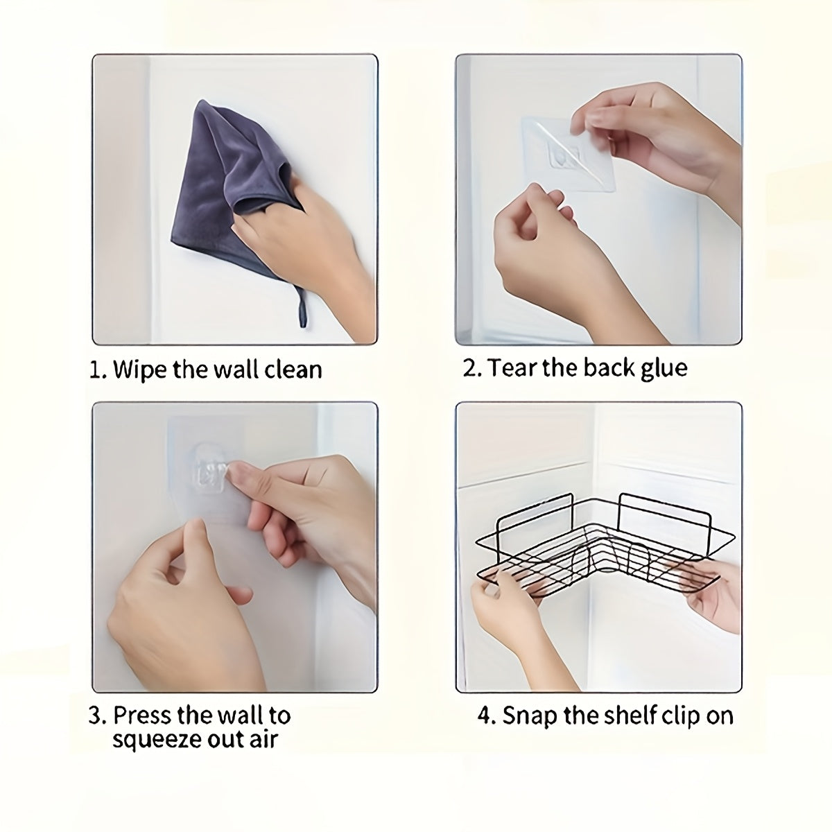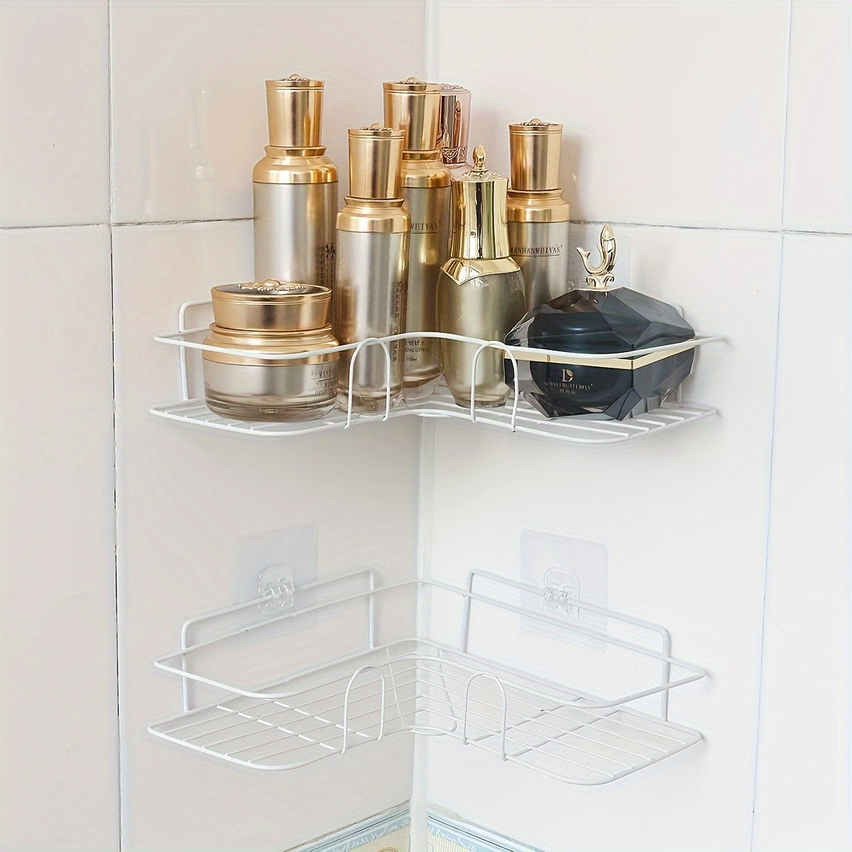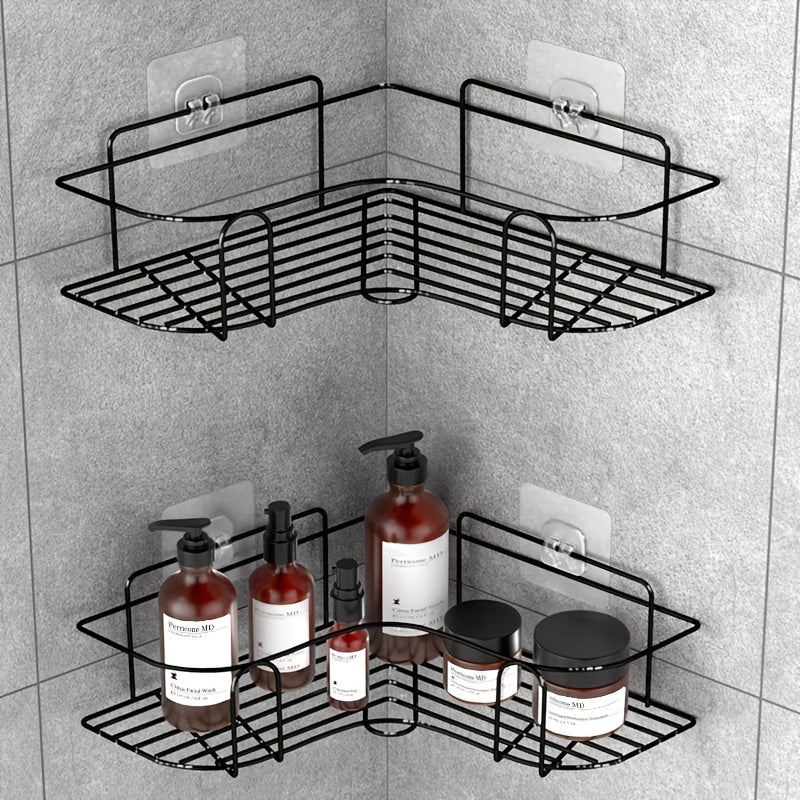 Zinapoyali burchakli dush javoni uchun zanglamaydigan po'latdan yasalgan saqlash tokchasi, oltin quvurlar bilan. Oson o'rnatish uchun muhrlangan stikerlar bilan birga keladi. Oq yoki qora rangda mavjud.