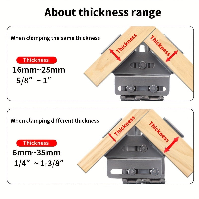 Daraxt ishlash uchun zanglamaydigan po'lat burchak qisqichi, sozlanadigan joylashuv va mustahkam plastik komponentlar bilan.