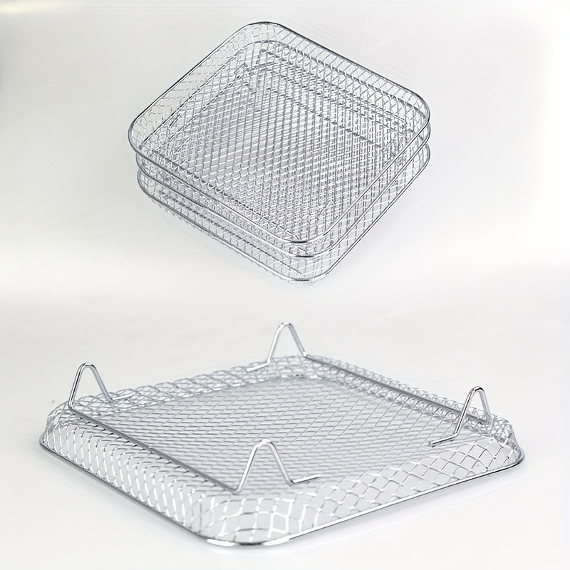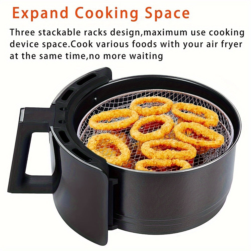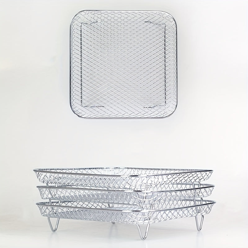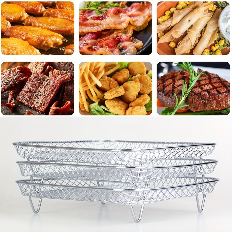 3 qavatli zanglamaydigan po'latdan yasalgan quritish tokchasi - oshxona va ovqatlanish uchun drenaj bilan jihozlangan, havo fritözlari va BBQ gril uchun ko'p funksiyali aksessuar.