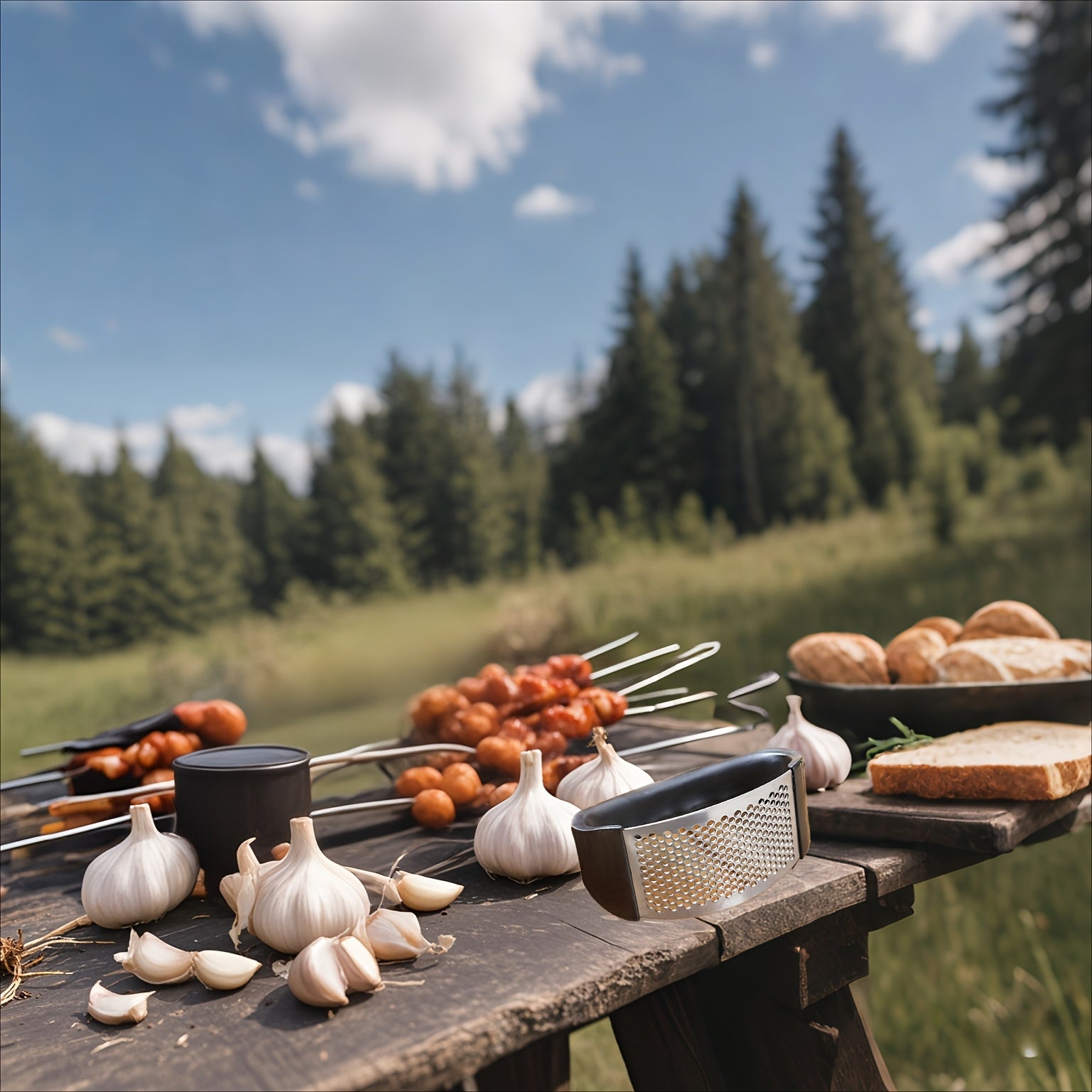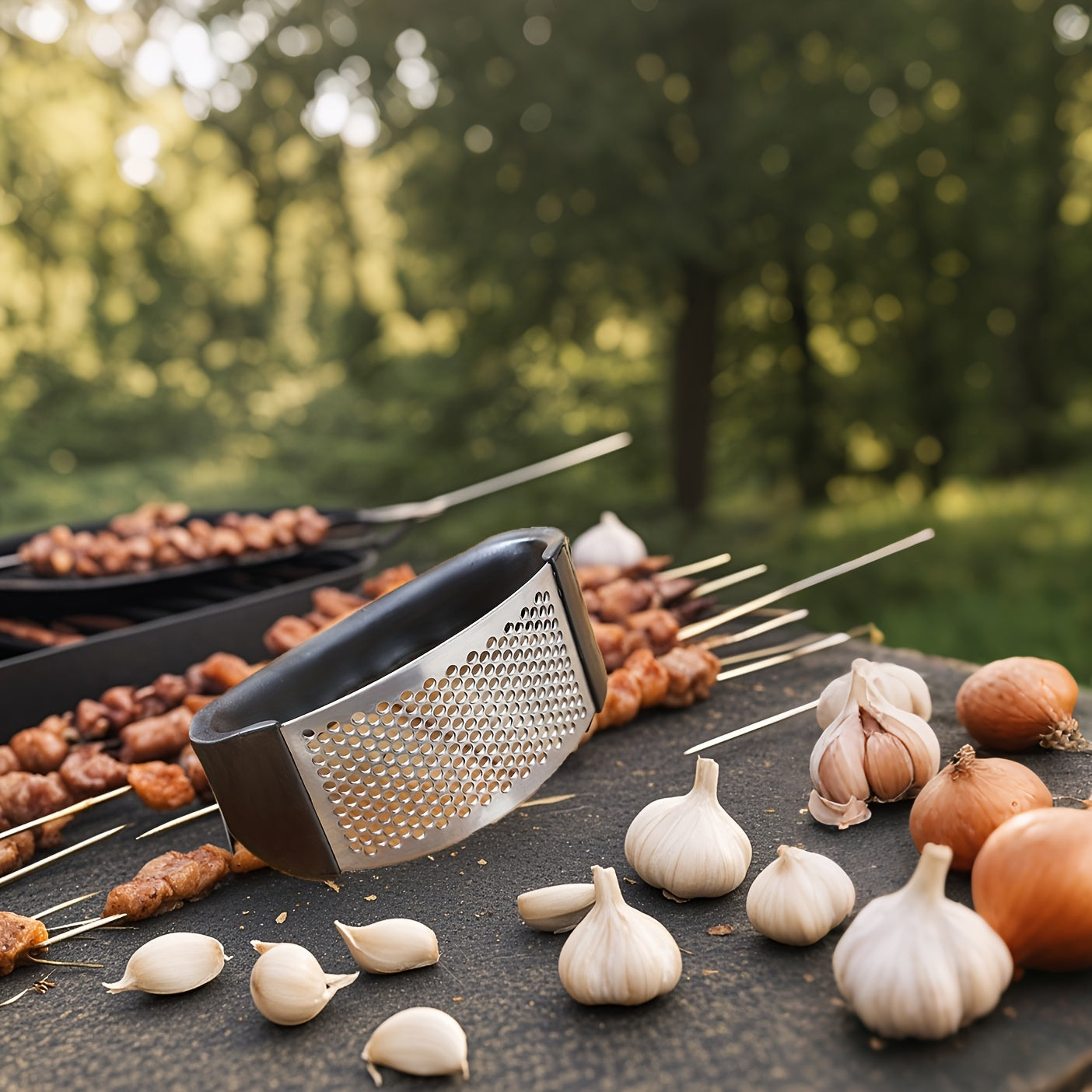 Zinapoyali sarimsoq siqish, oson maydalash uchun, ochiq havoda dam olish, sayohat, lagerda qolish va kichik yashash joylari uchun ideal.