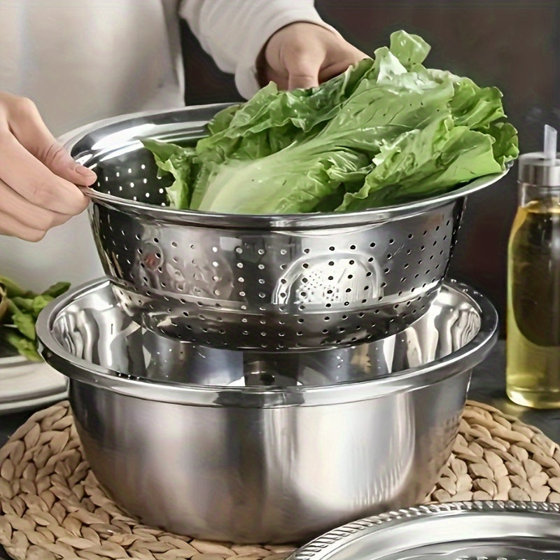 Filtrlash va aralashtirish uchun tishli tarmoq bilan zanglamaydigan po'latdan yasalgan oshxona to'plami, turli pishirish usullari uchun mos.