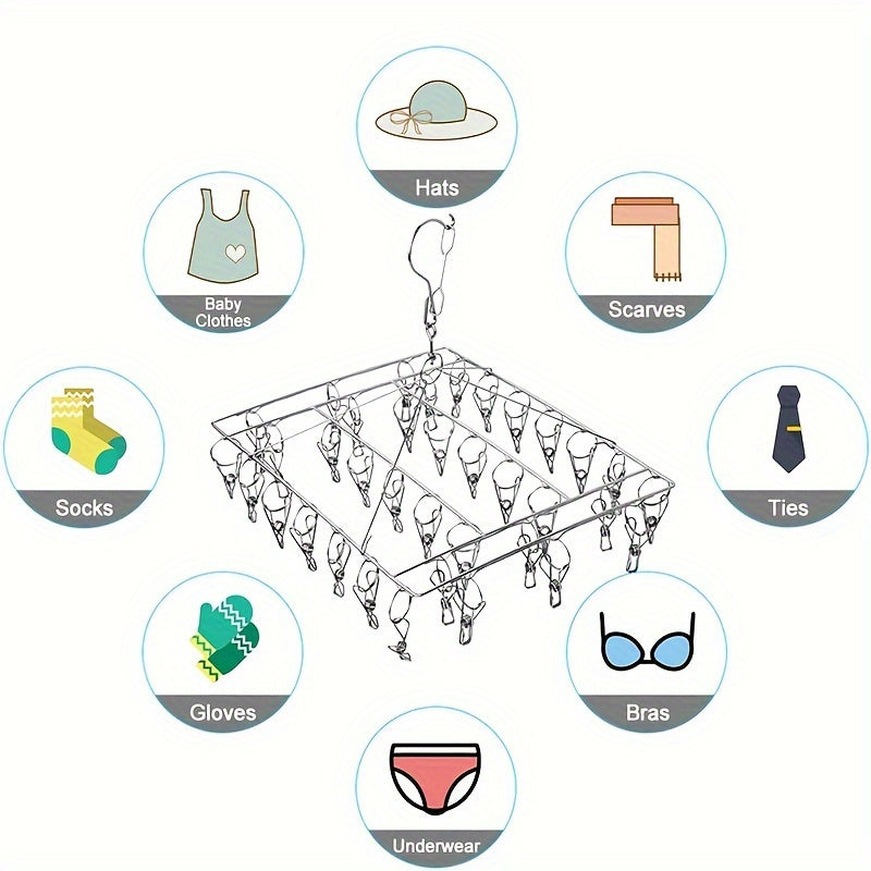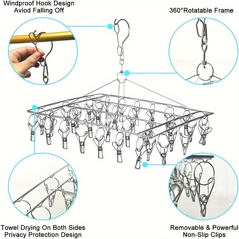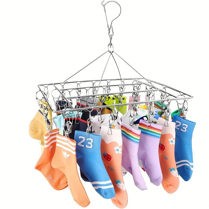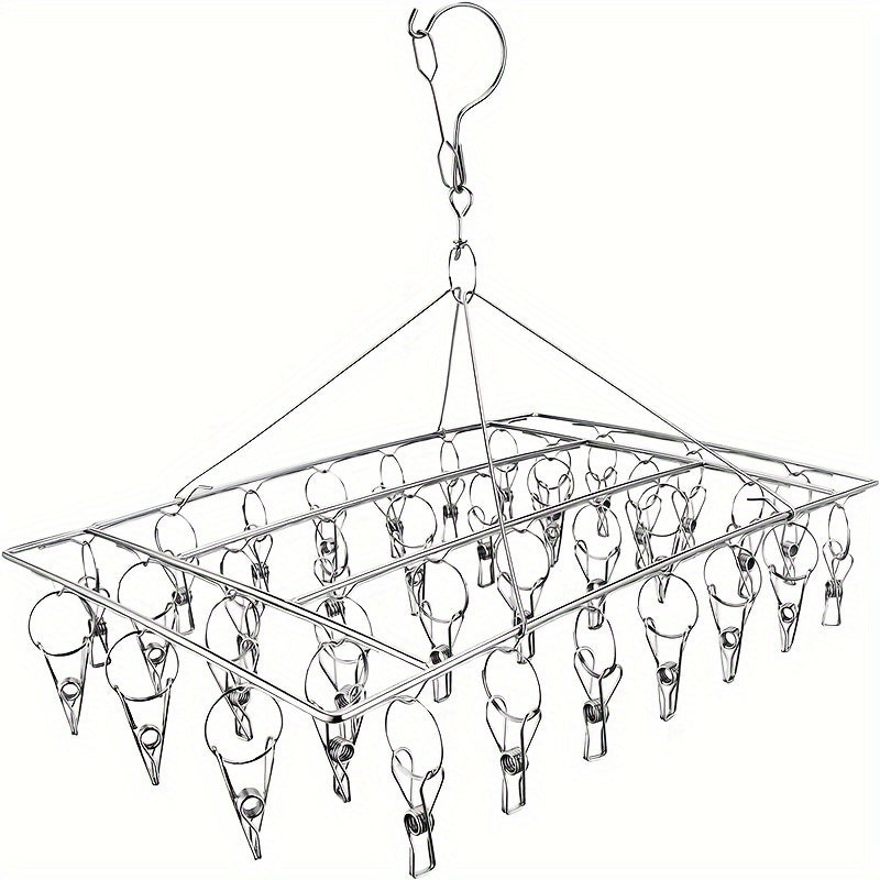 Zinapolga qarshi dizayni bilan ko'p klip va aylanuvchi tutqichga ega zanglamas po'latdan yasalgan paypoq quritish stendi - paypoqlar, brassierlar, ichki kiyimlar va kir yuvish aksessuarlar uchun ideal
