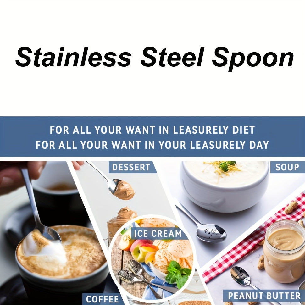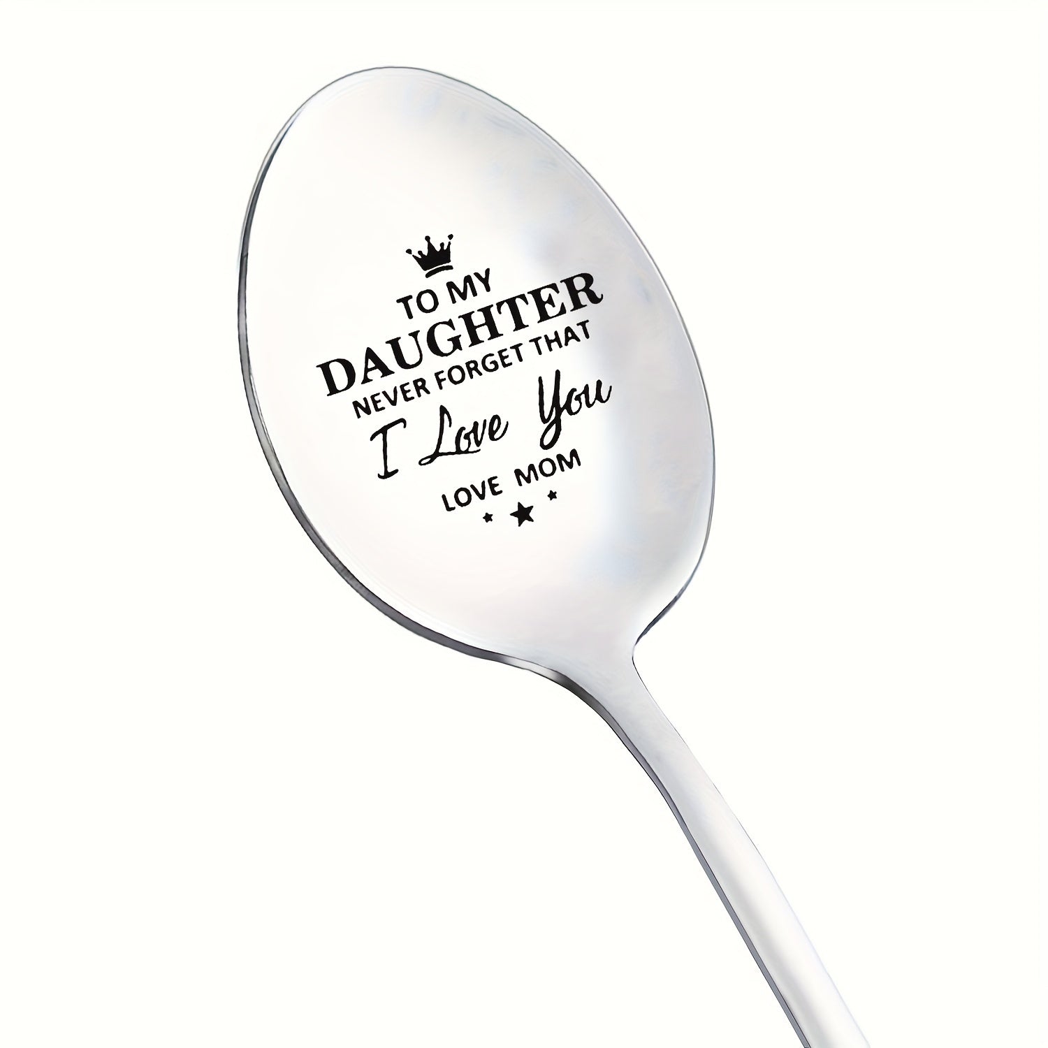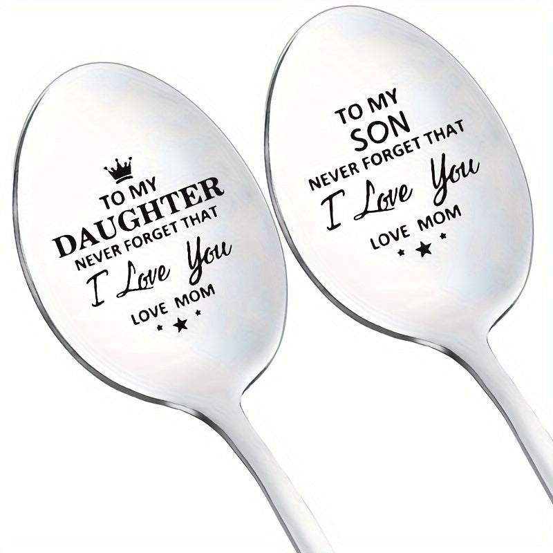 "Qizingiz yoki o'g'lingiz uchun samimiy xabar bilan o'yilgan zanglamas po'lat qoshiq - yaqinlaringiz uchun mukammal sovg'a, qahva yoki choy uchun mos, tug'ilgan kunlar, Rojdestvo, Halloween, Otalar kuni yoki shunchaki sabab bilan ideal."