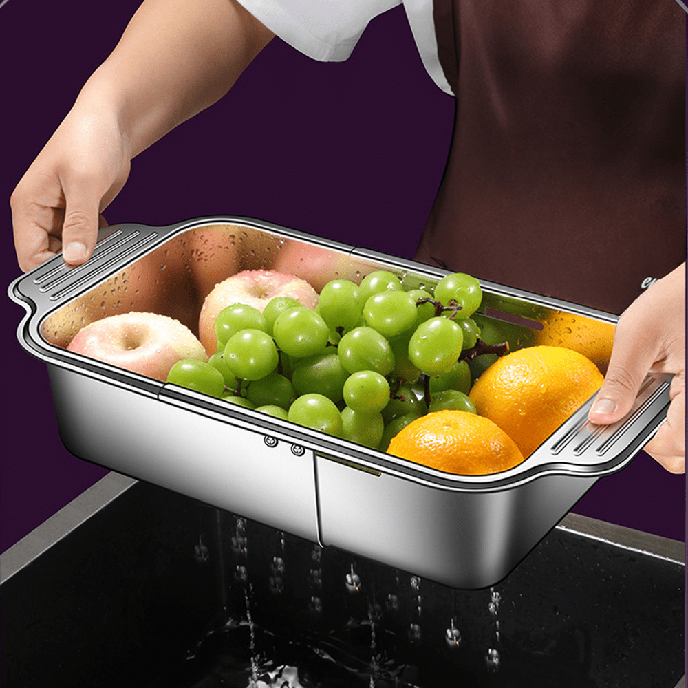 Naychali zanglamas po'latdan yasalgan, idishning ustiga qo'yiladigan kolander, mevalarni, sabzavotlarni yuvish, makaronni suzish va idishlarni quritish uchun moslashuvchan o'lcham - muhim oshxona asbobi, 1 dona