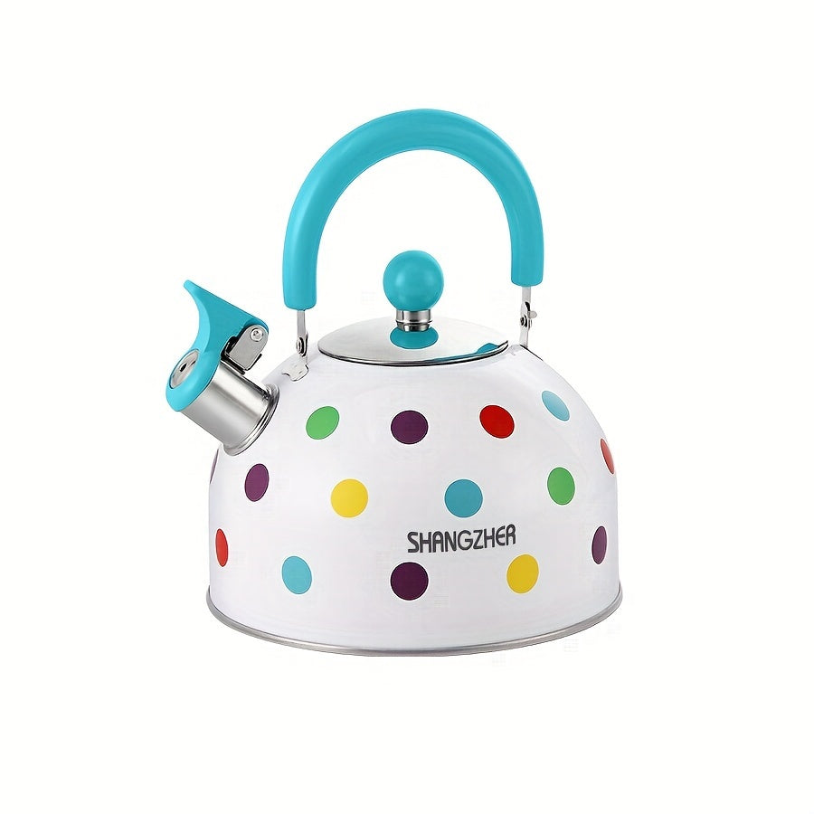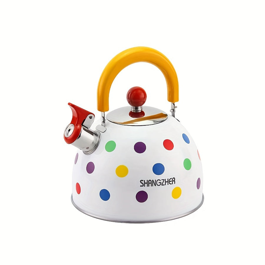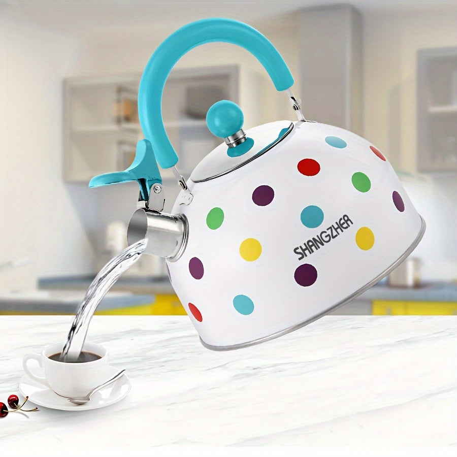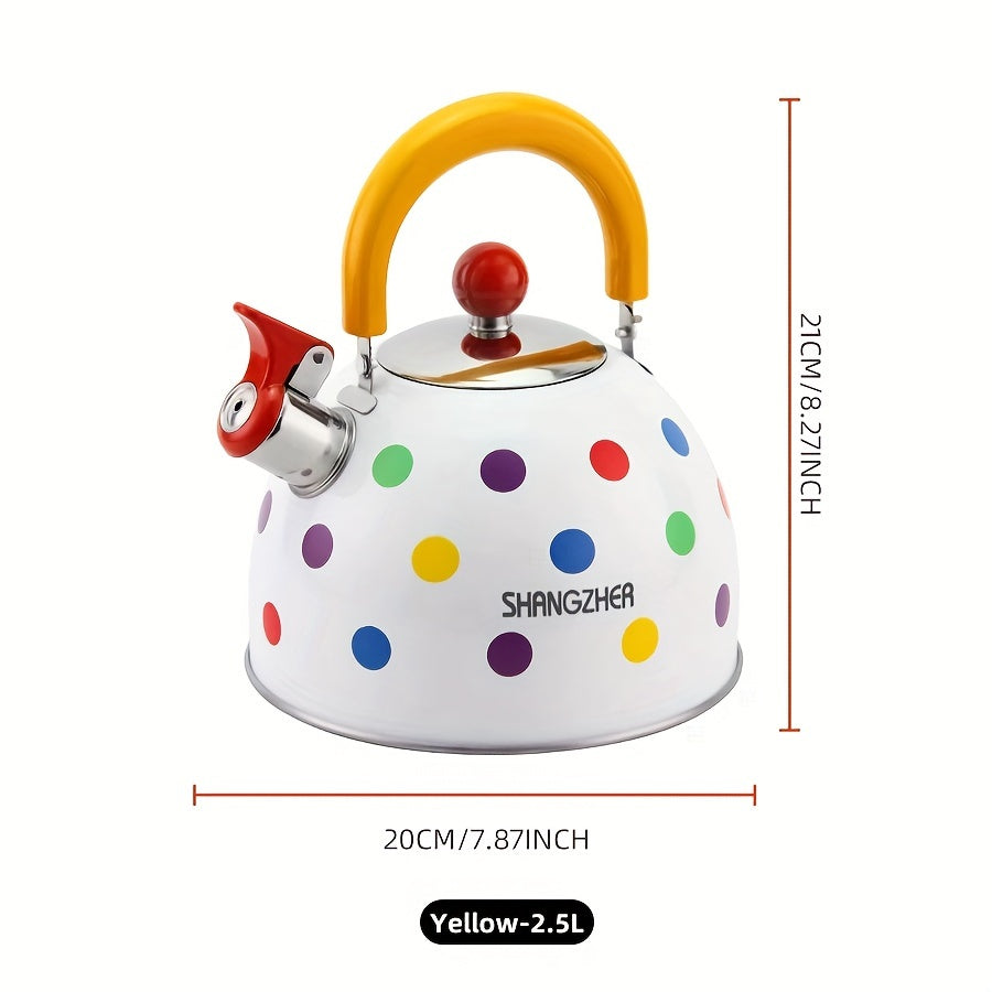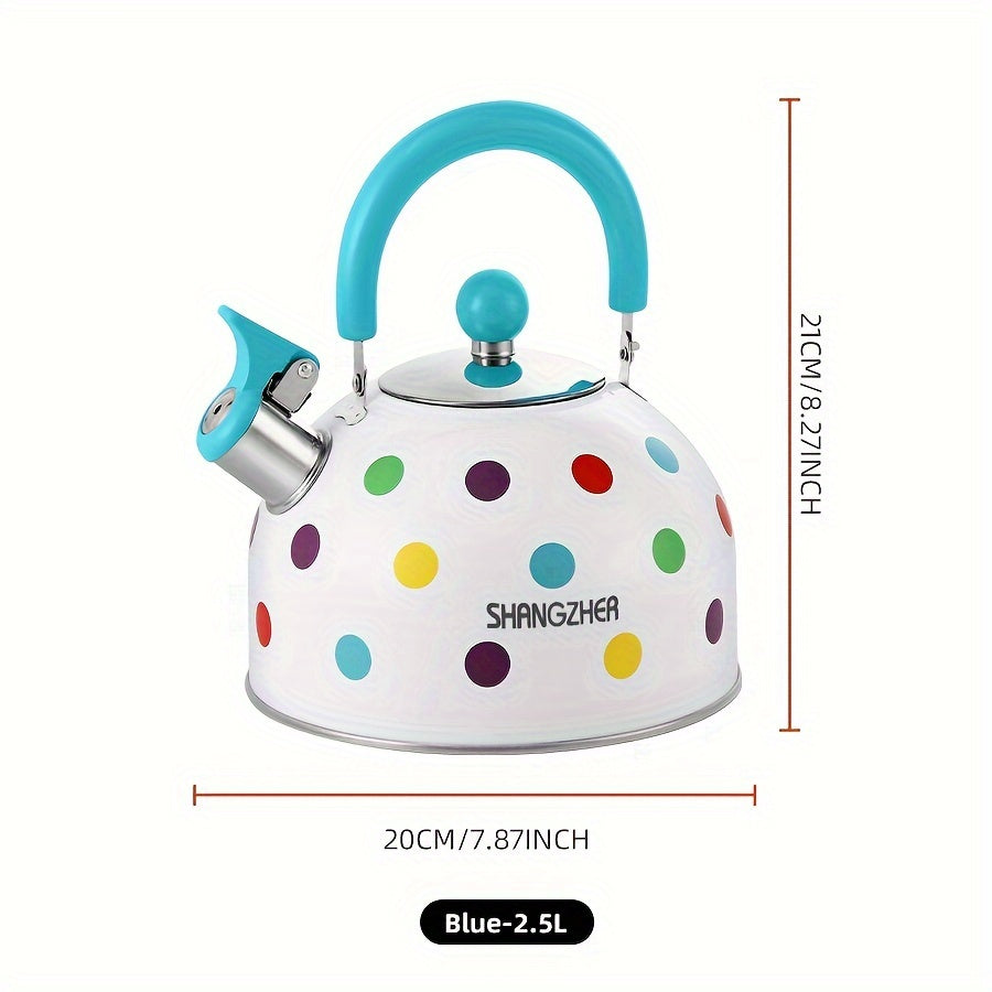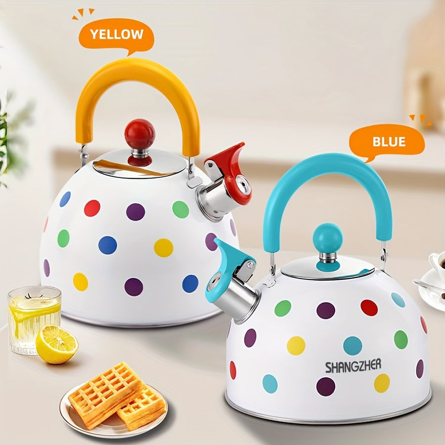 Polka nuqtalari bilan zanglamas po'latdan yasalgan shovqinli qozon, gaz BBQ uchun rang-barang qaynatish qozoni, magnit pechka bilan mos, ochiq havoda sayohat va lagerda suv qozoni uchun ideal