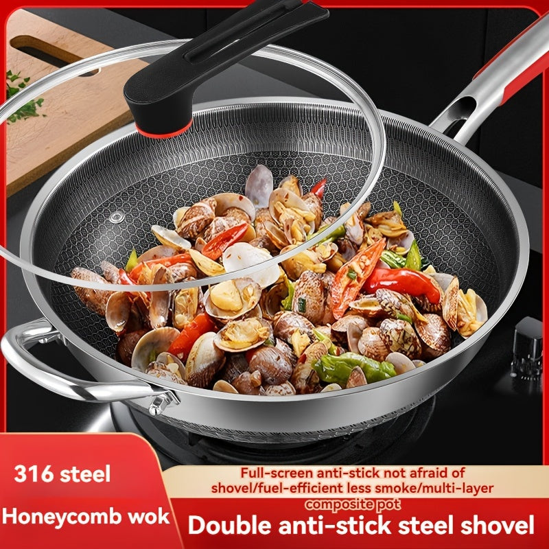 Noxud qozon, shisha qopqoq va asal to'plami yopishqoq qoplama bilan - To'liq ekranli chizishdan himoyalovchi vertikal qozon qopqog'i, ikki tomonlama yopishqoq lopata va chizishdan himoyalovchi dizayn - Gaz va induksion plitalar uchun mukammal