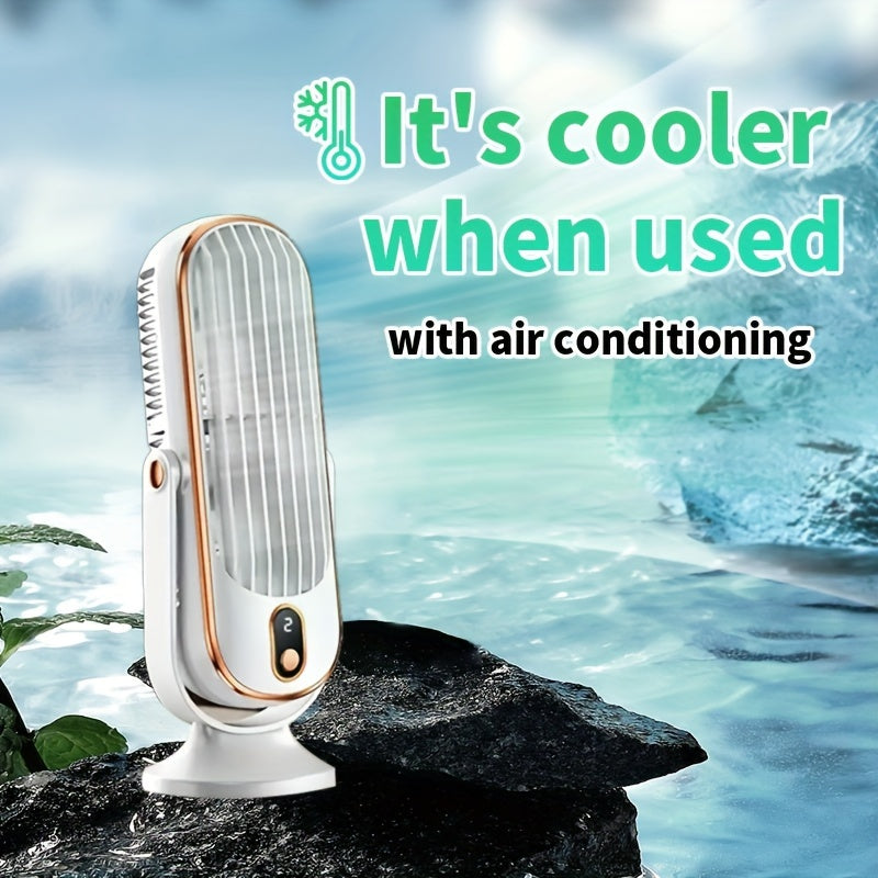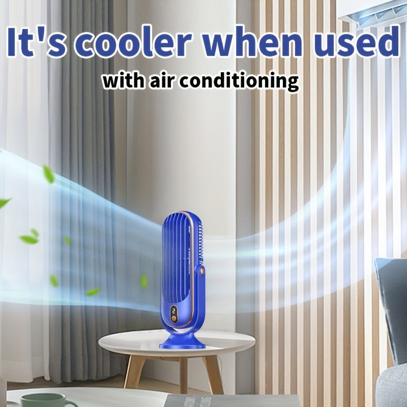 Portativ konditsioner ventilyatori 720° osillatsiya bilan, ikki motorli, USB orqali qayta zaryadlanadigan, 5 tezlik