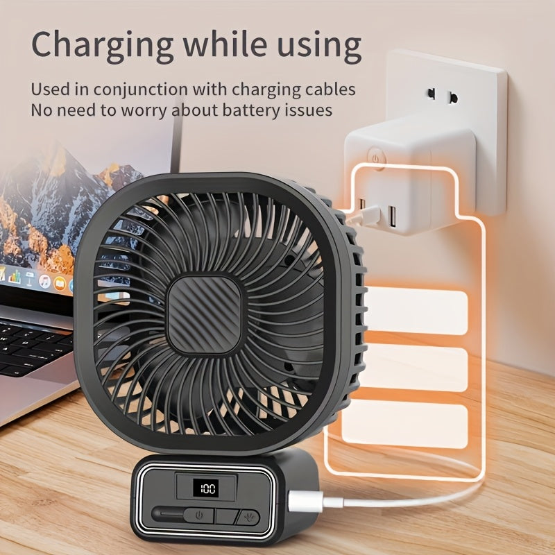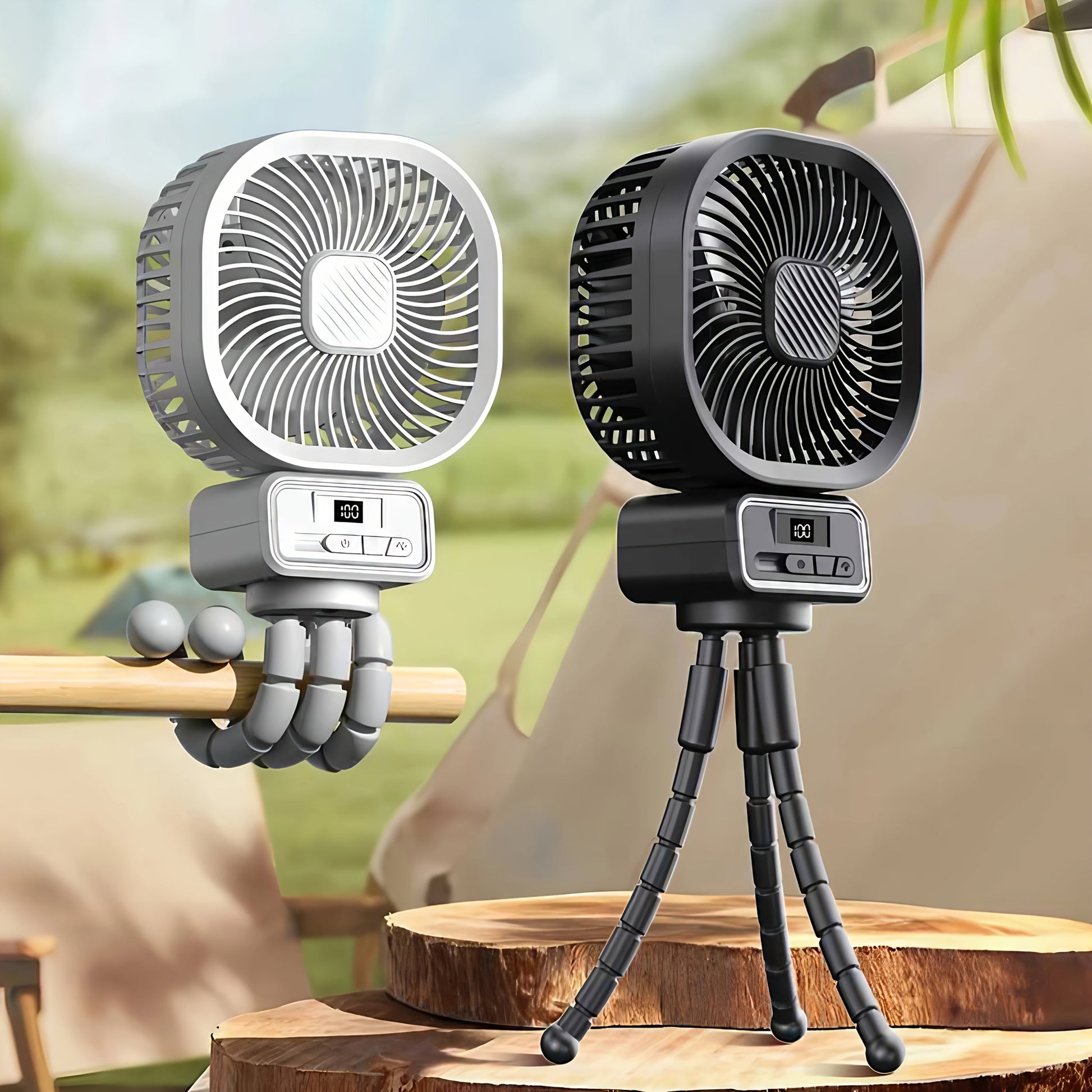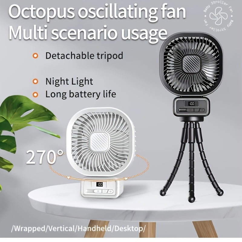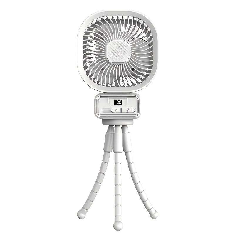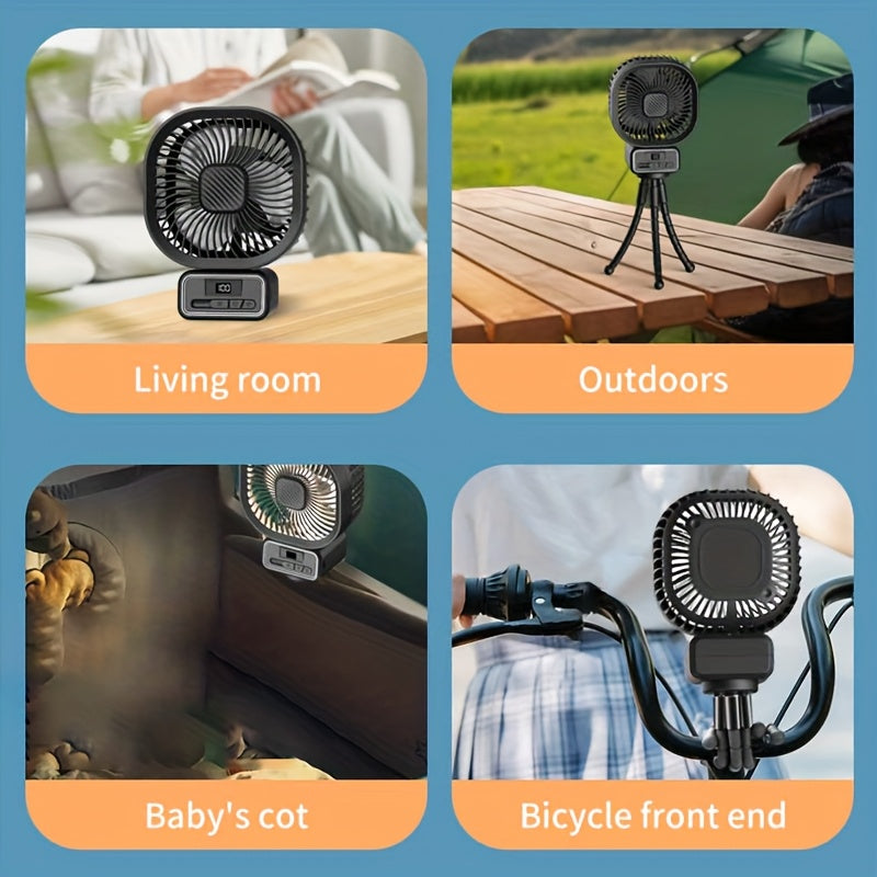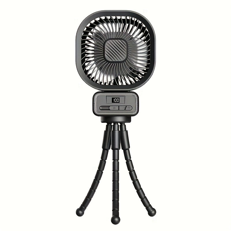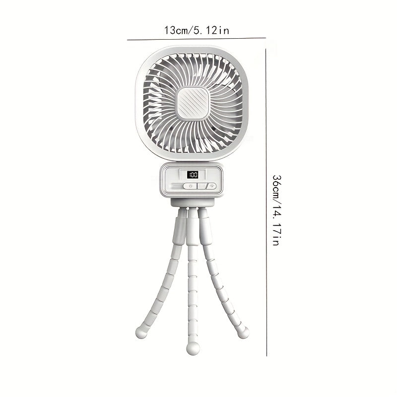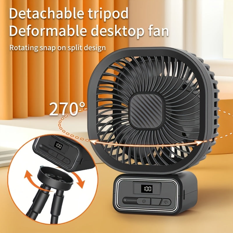 Portativ stol fanati bilan uch oyoqli stativ, USB bilan qayta zaryadlanadigan, 3 tezlik
