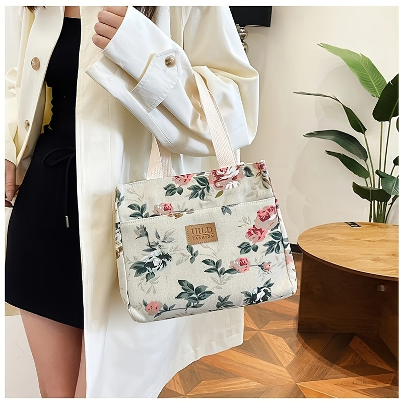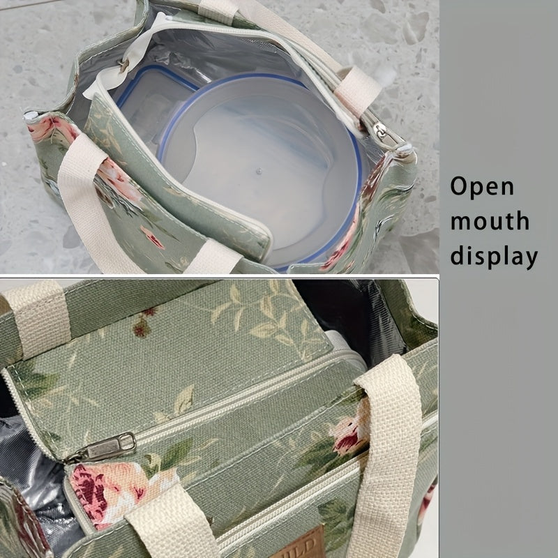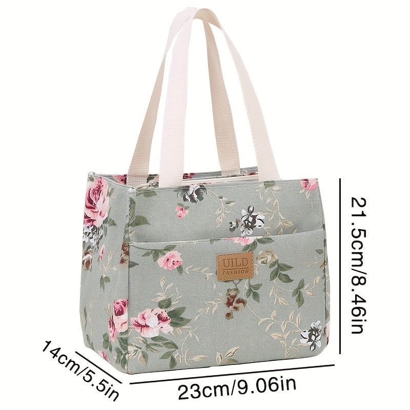 Izolyatsiyalangan tushlik sumkasi, katta hajmli, gul naqshli, oziq-ovqat sovutgichi, ish, sayohat va pikniklar uchun