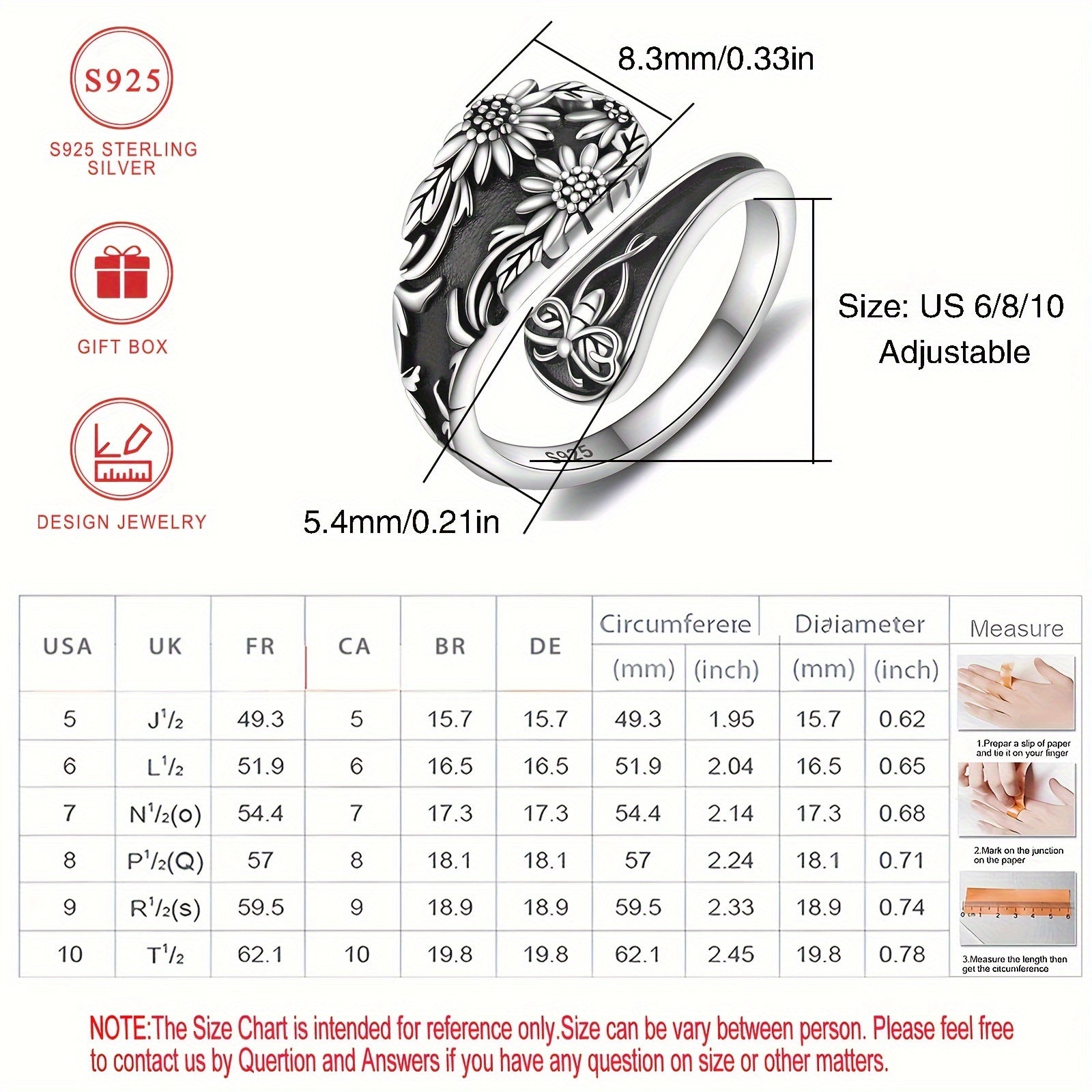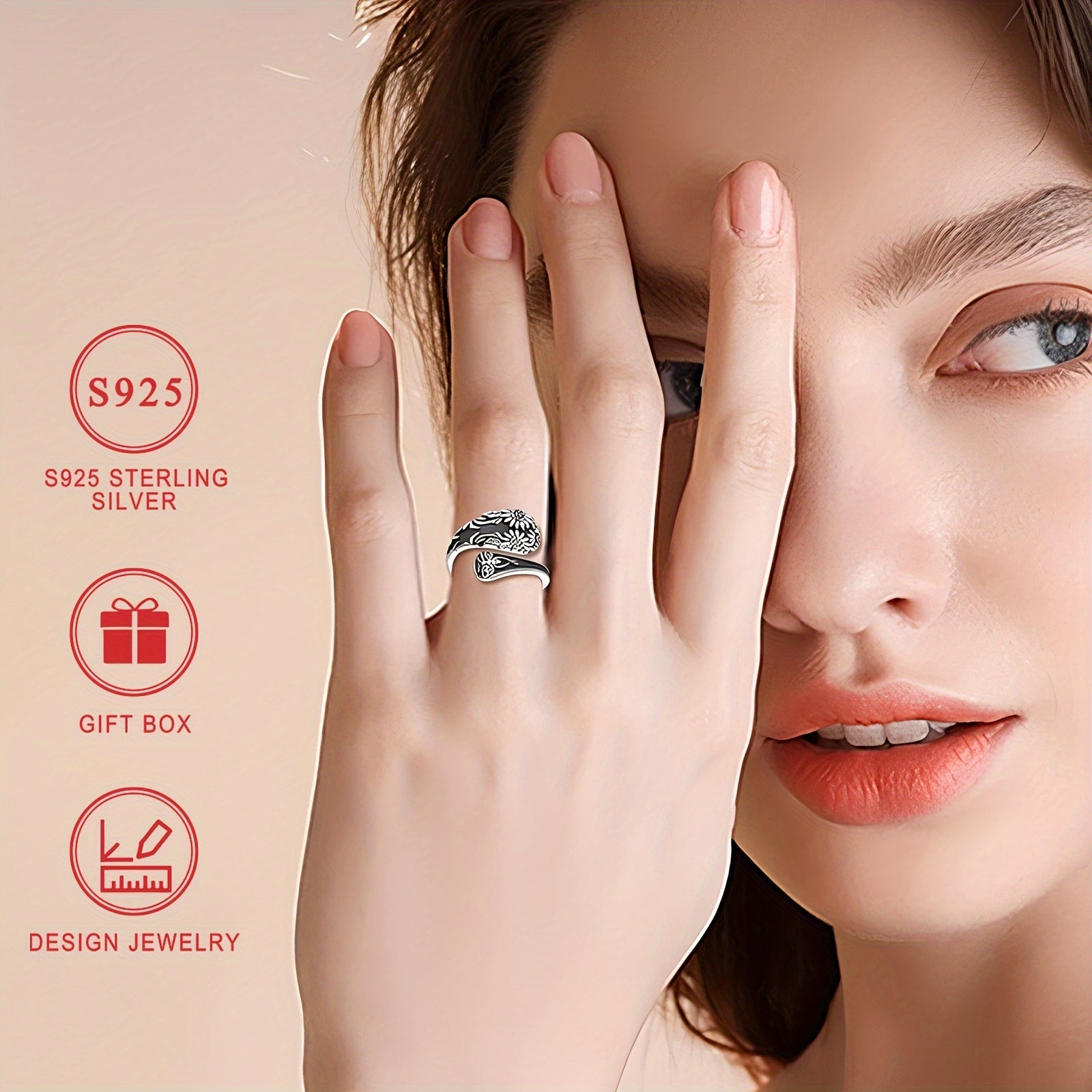 "Sterling Silver qoshiq halqa, quyosh gul va chamomile dizayni - Vintage Bohemian uslubi, kapalak va gullar o'yilgan, gippoallergen, sovg'a qutisi bilan birga - Onalar kuni va har kuni kiyish uchun ideal"