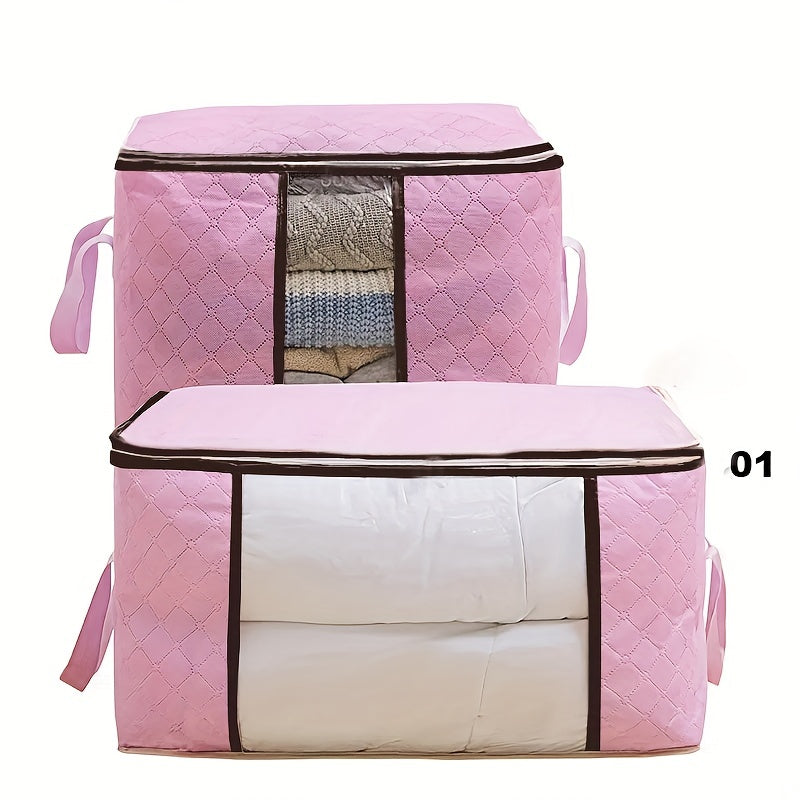 Kuchaytirilgan tutqich va shaffof derazali saqlash sumkasi, to'shak, yostiq va kiyimlarni saqlash uchun ideal. Suv o'tkazmaydigan to'qilmagan materialdan tayyorlangan bo'lib, to'shak ostida saqlash uchun mustahkam fermuarlar bilan jihozlangan.